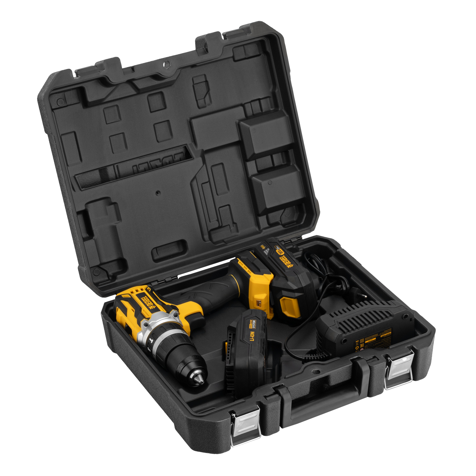 Дрель-шуруповерт аккумуляторная - 1 штБатарея аккумуляторная - 2 штУстройство зарядное - 1 штКейс для хранения - 1 штРуководство по эксплуатации с гарантийным талоном - 1 шт |