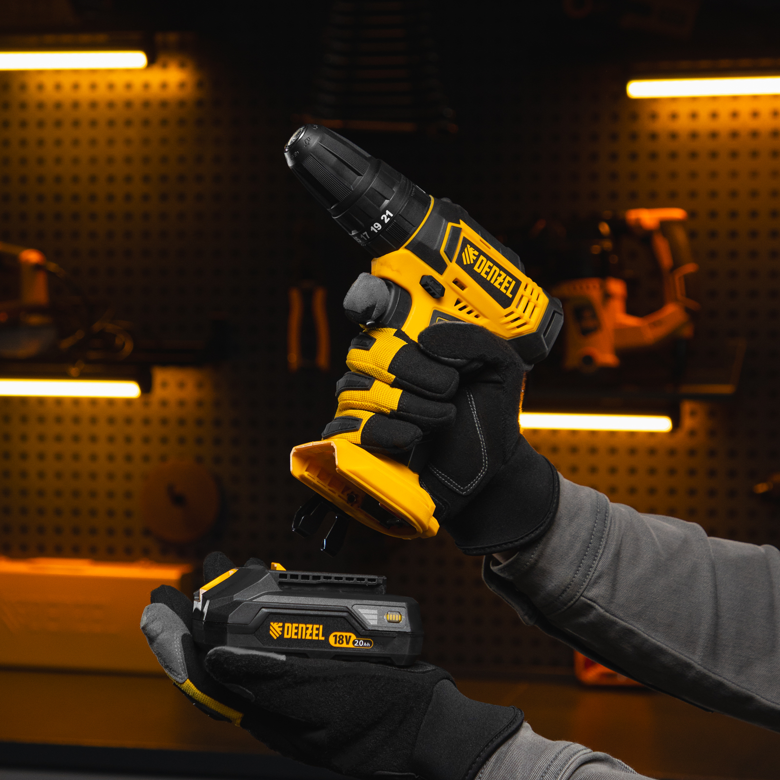 - Универсальность — аккумуляторы совместимы со всеми инструментами модельного ряда единой платформы Denzel Battery System 18V.