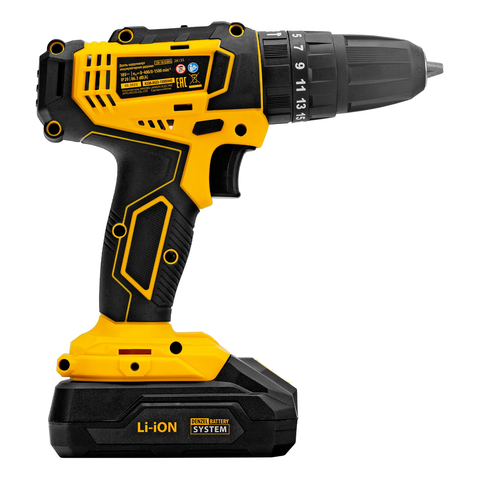 Дрель-шуруповерт аккумуляторная ударная CID-18-02BM, Li-Ion, 18 В, 2 акк. Denzel в Краснодаре