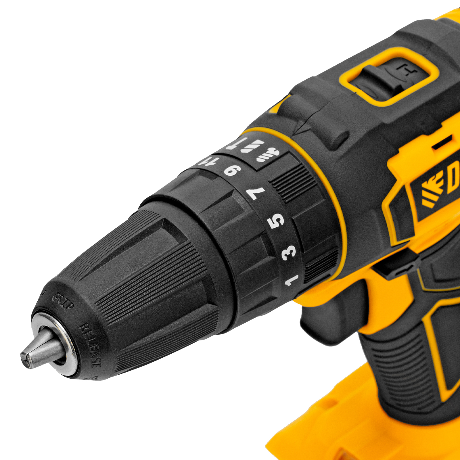- Универсальность — дрель-шуруповерт совместима с любым Li-Ion аккумулятором и зарядным устройством единой платформы Denzel Battery System 18V.
