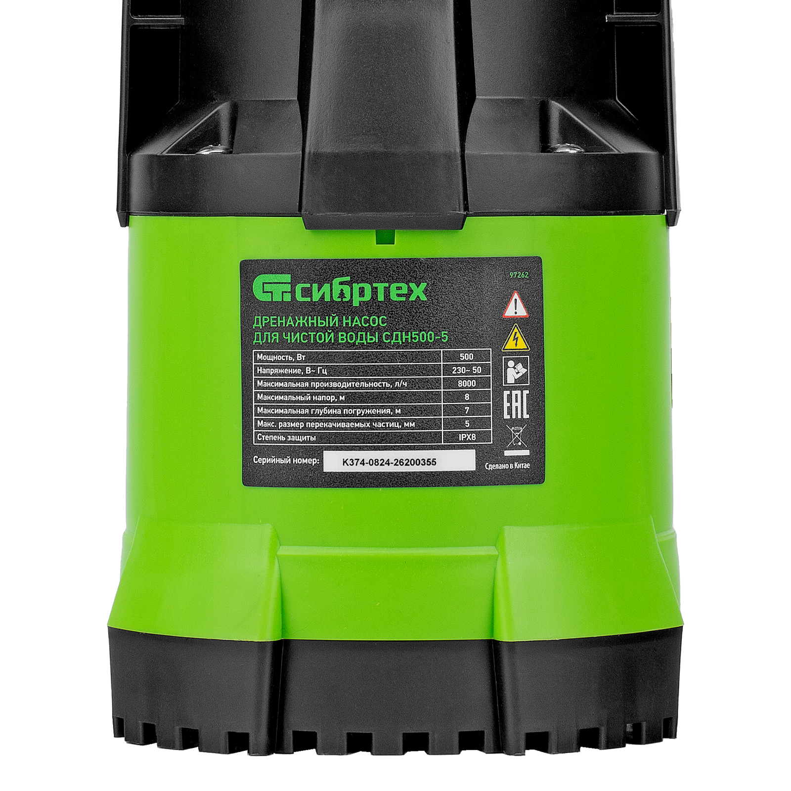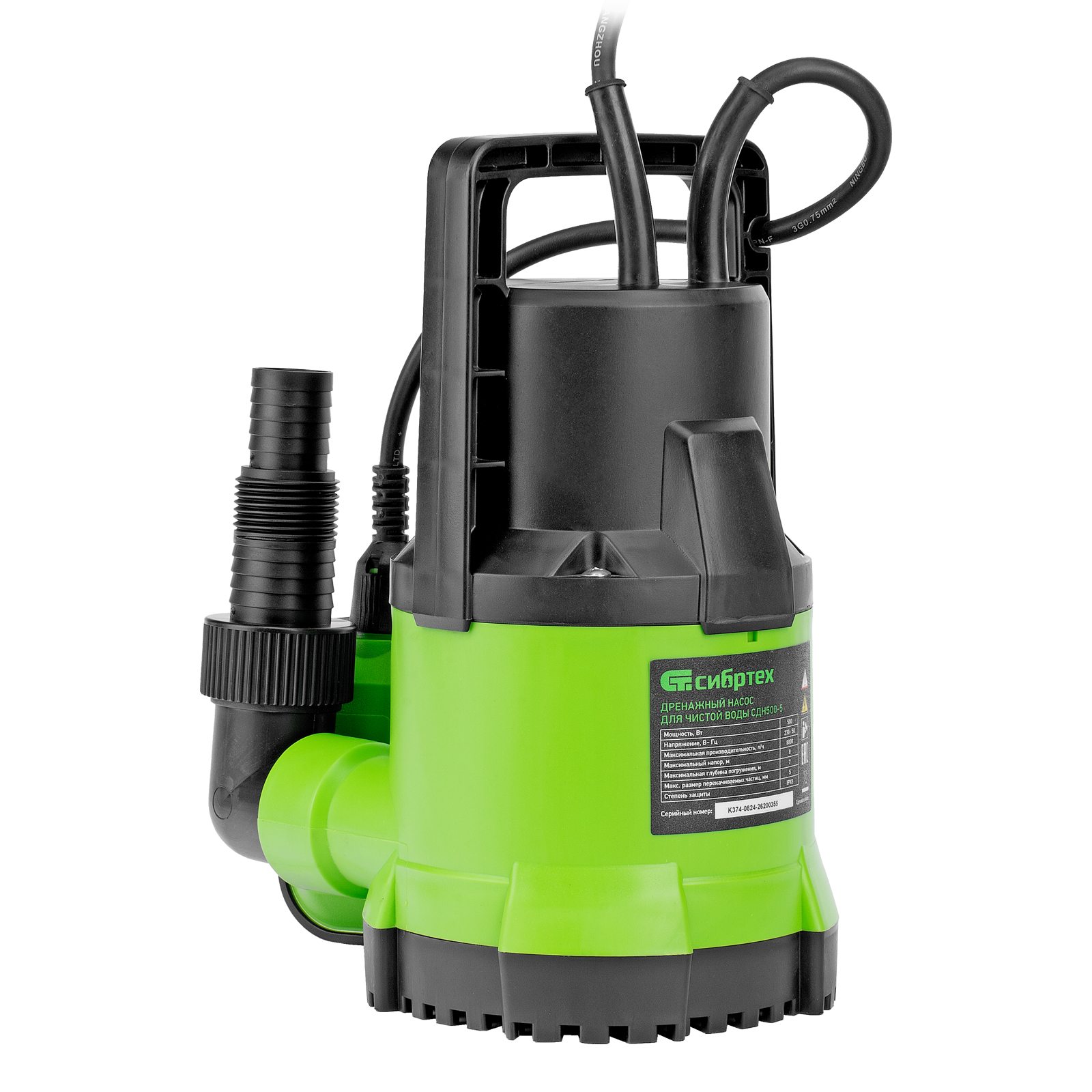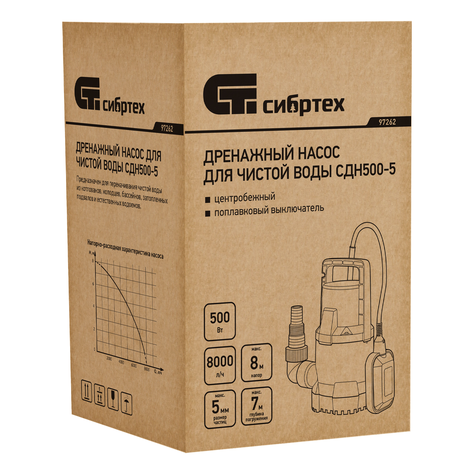 Дренажный насос для чистой воды СДН500-5, 500 Вт, напор 8 м, 8000 л/ч Сибртех в Краснодаре