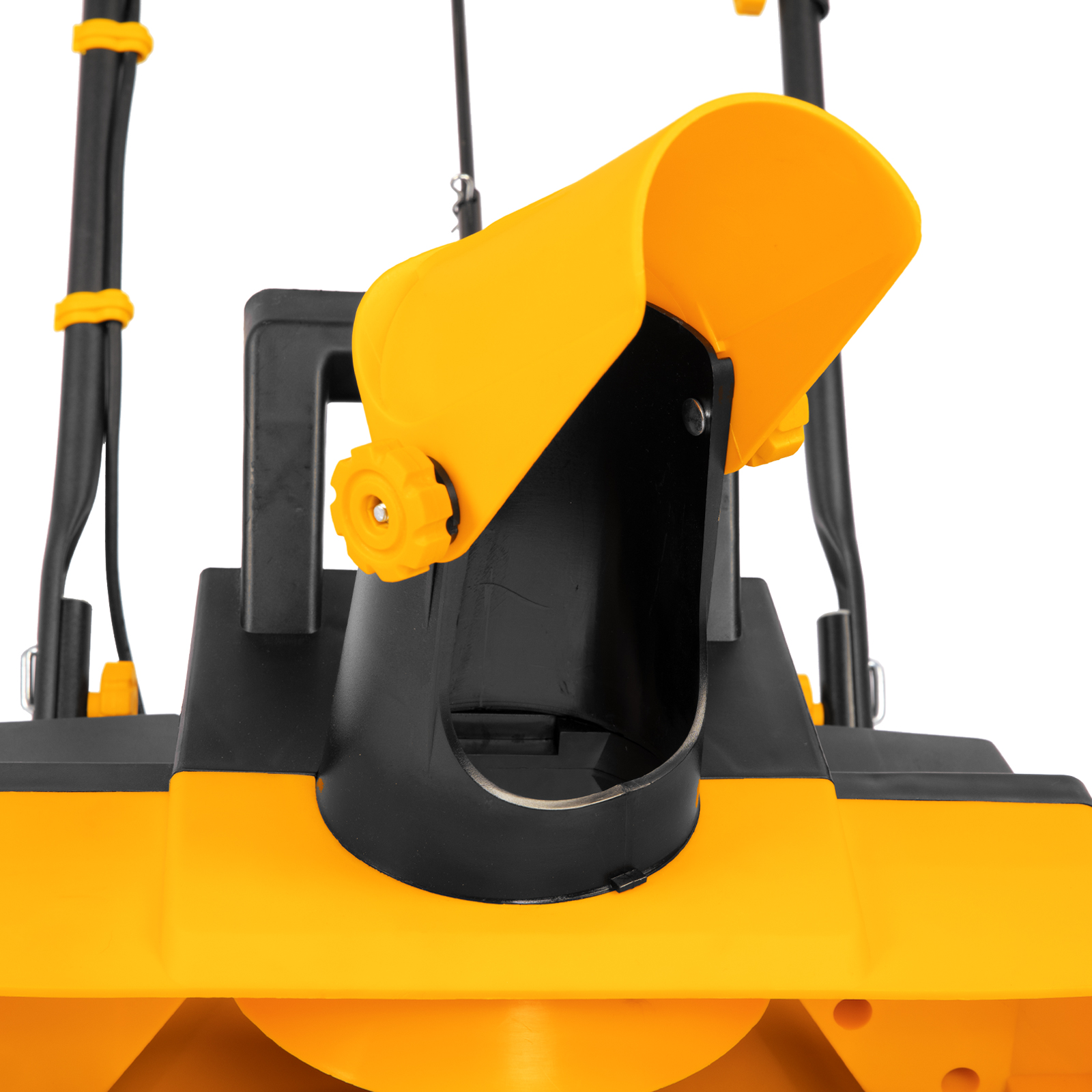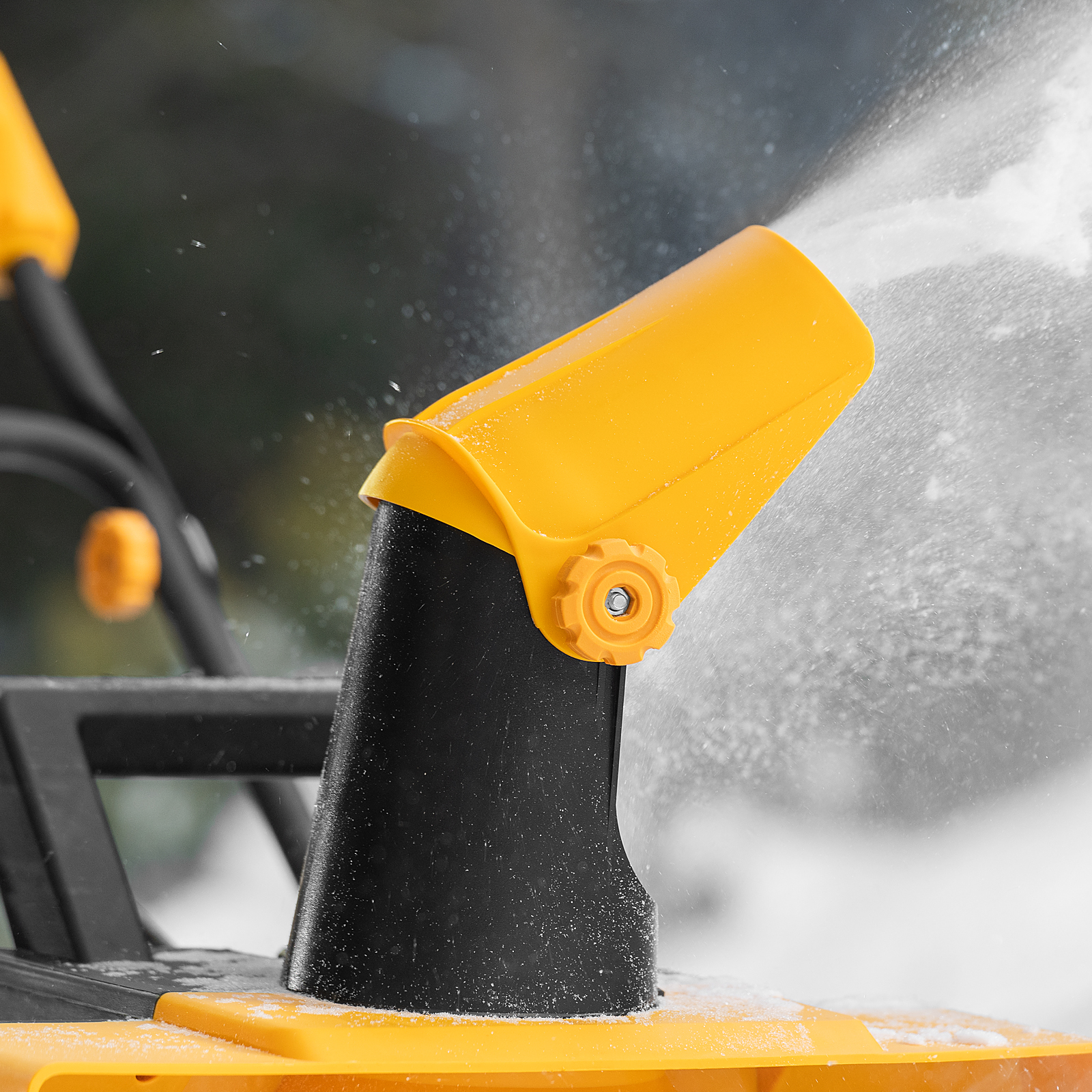 - Удобное управление — регулировка положения выпускного желоба и угла наклона дефлектора позволяет установить желаемое направление выброса снега и его дальность (до 6 м).