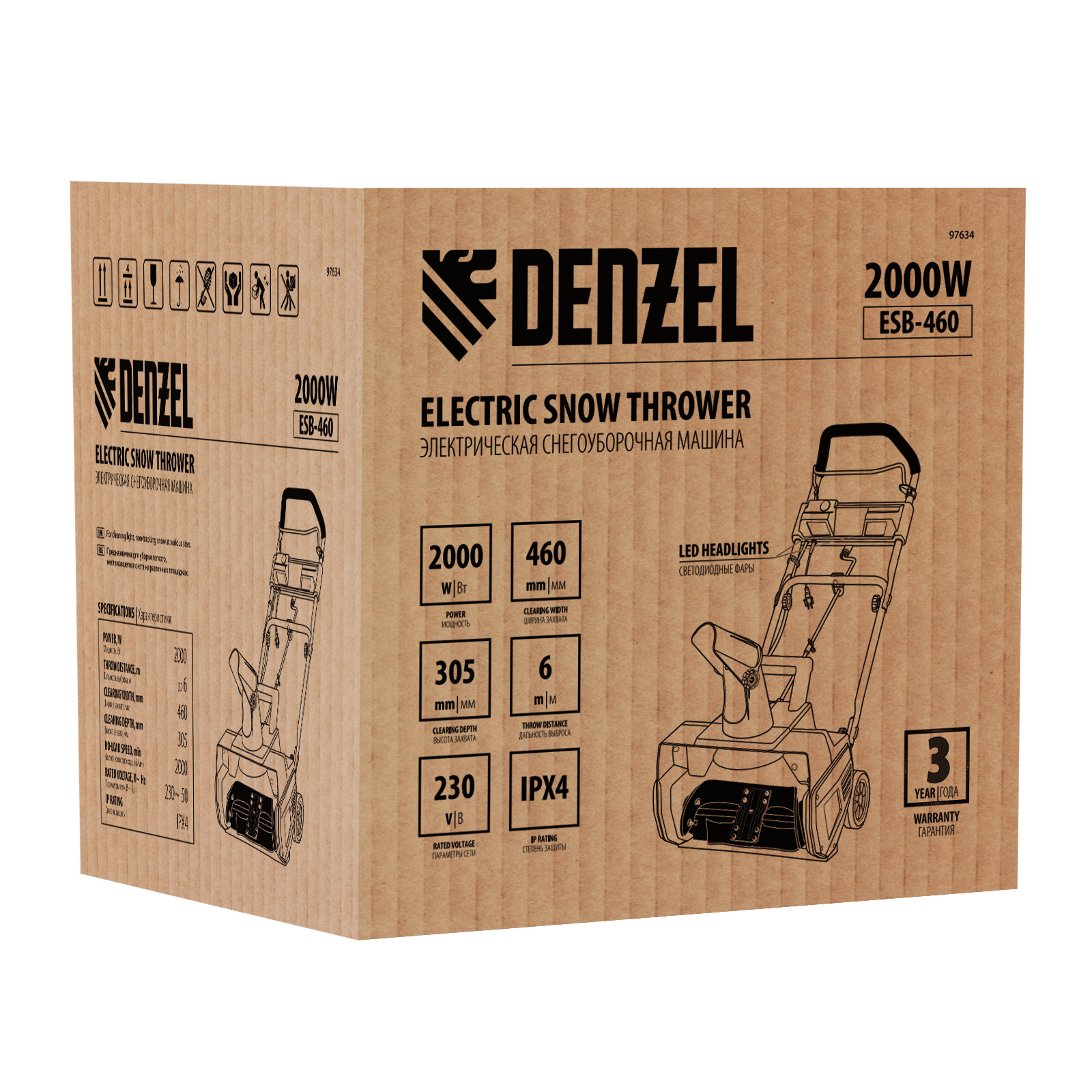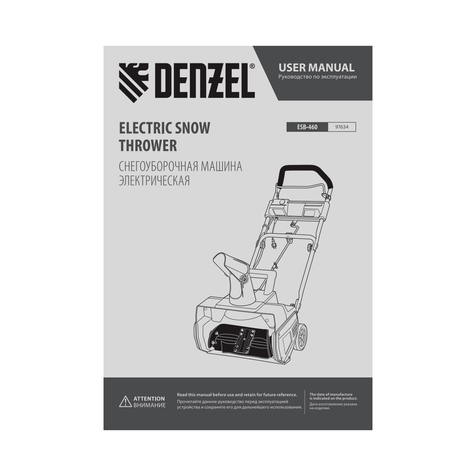 Электрическая снегоуборочная машина ESB-460, 2 кВт Denzel в Краснодаре