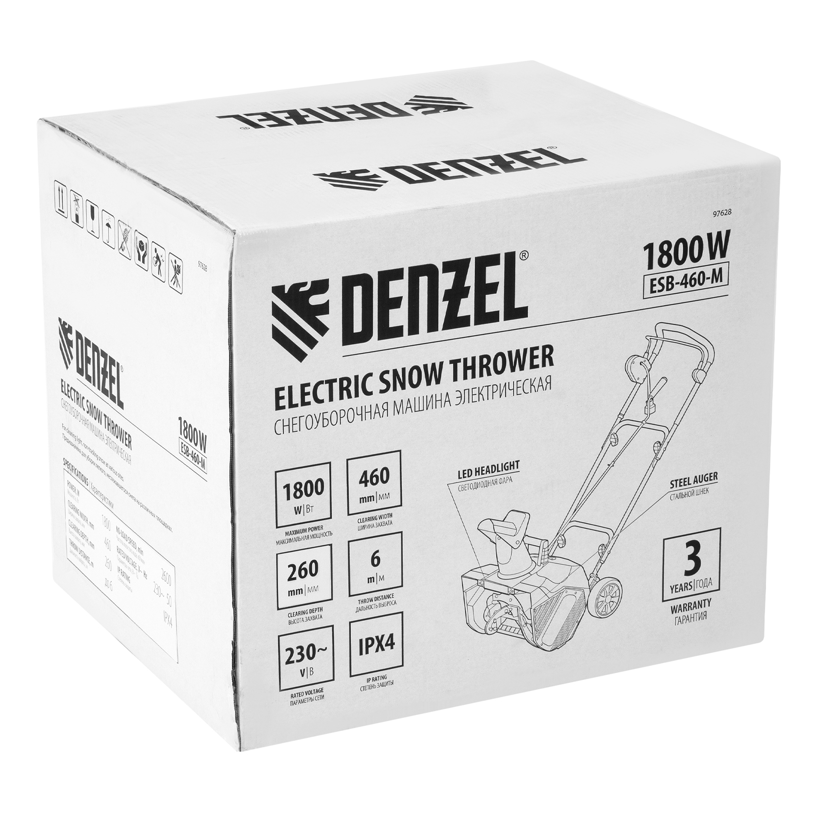 Электрическая снегоуборочная машина ESB-460-M, 1.8 кВт, металлический шнек, LED фара Denzel в Краснодаре