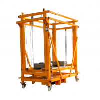 Оборудование состоит из рамы (основания) на транспортировочных колесах, мачт, платформы и усилительных балок. Подъем происходит за счет блочной системы полиспаст с приводом от электролебедки. Привод работает от сети 220В. Благодаря легкому весу и простой конструкции, данное оборудование быстро разбирается и собирается, что позволяет быстро приступить к работе, а также удобно траспортировать между рабочими объектами.
