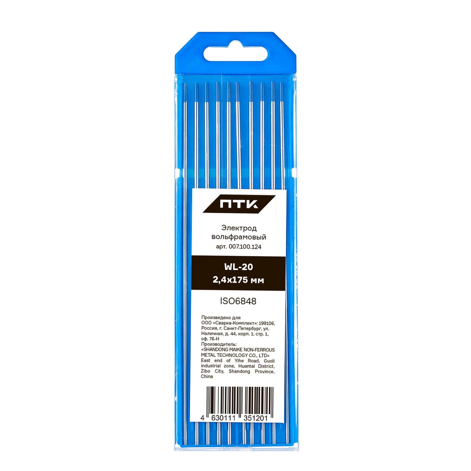 Диаметр электрода 2,4 мм, длина электрода 175 мм. Вольфрам имеет синий цветовой код. Поставляется в пластиковом пенале по 10 штук. В карточке с товаром указана цена за 1 вольфрамовый электрод.