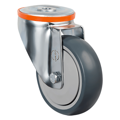 Аппаратное колесо EM04 MBT 100 предназначено для установки на торговое оборудование, больничную мебель, медицинскую аппаратуру и т. п. Шинка выполнена из серой резины, кронштейн — из оцинкованной стали, а обод — из полипропилена. Колесо имеет диаметр 100 мм, ширину обода 32 мм и работает в температурном диапазоне от -20 до +60 °С. Грузоподъемность модели — 80 кг.