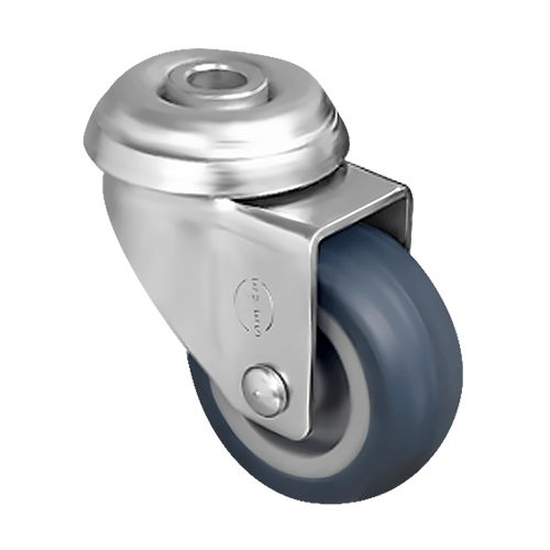 Аппаратное колесо EP04 MKT 50 предназначено для установки на торговое оборудование, больничную мебель, медицинскую аппаратуру и т. п. Шинка выполнена из серой резины, кронштейн — из оцинкованной стали, а обод — из полипропилена. Колесо имеет диаметр 50 мм, ширину обода 20 мм и работает в температурном диапазоне от -20 до +60 °С. Грузоподъемность модели — 35 кг.