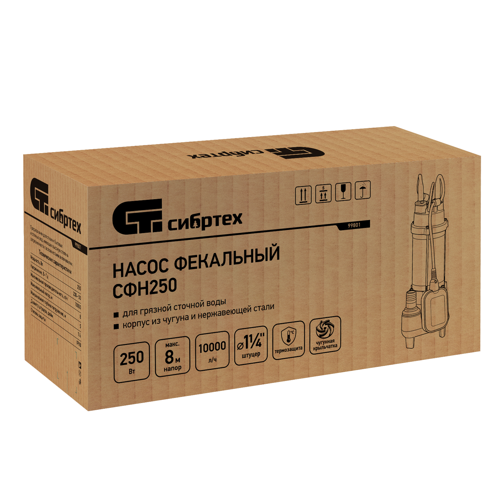 Фекальный насос СФН250, 250 Вт, напор 8 м, 10000 л/ч Сибртех в Краснодаре