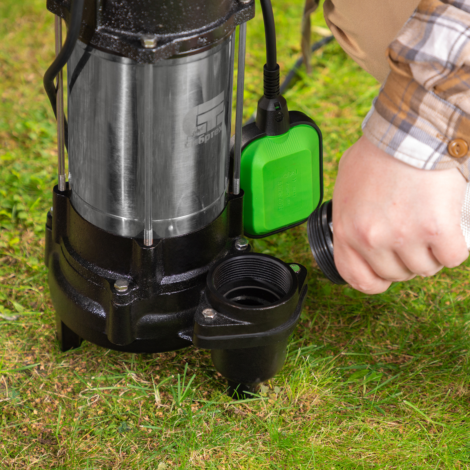 - Автоматическая работа — датчик уровня воды не дает насосу запускаться на сухом ходу, контроль пользователя при этом не требуется.
