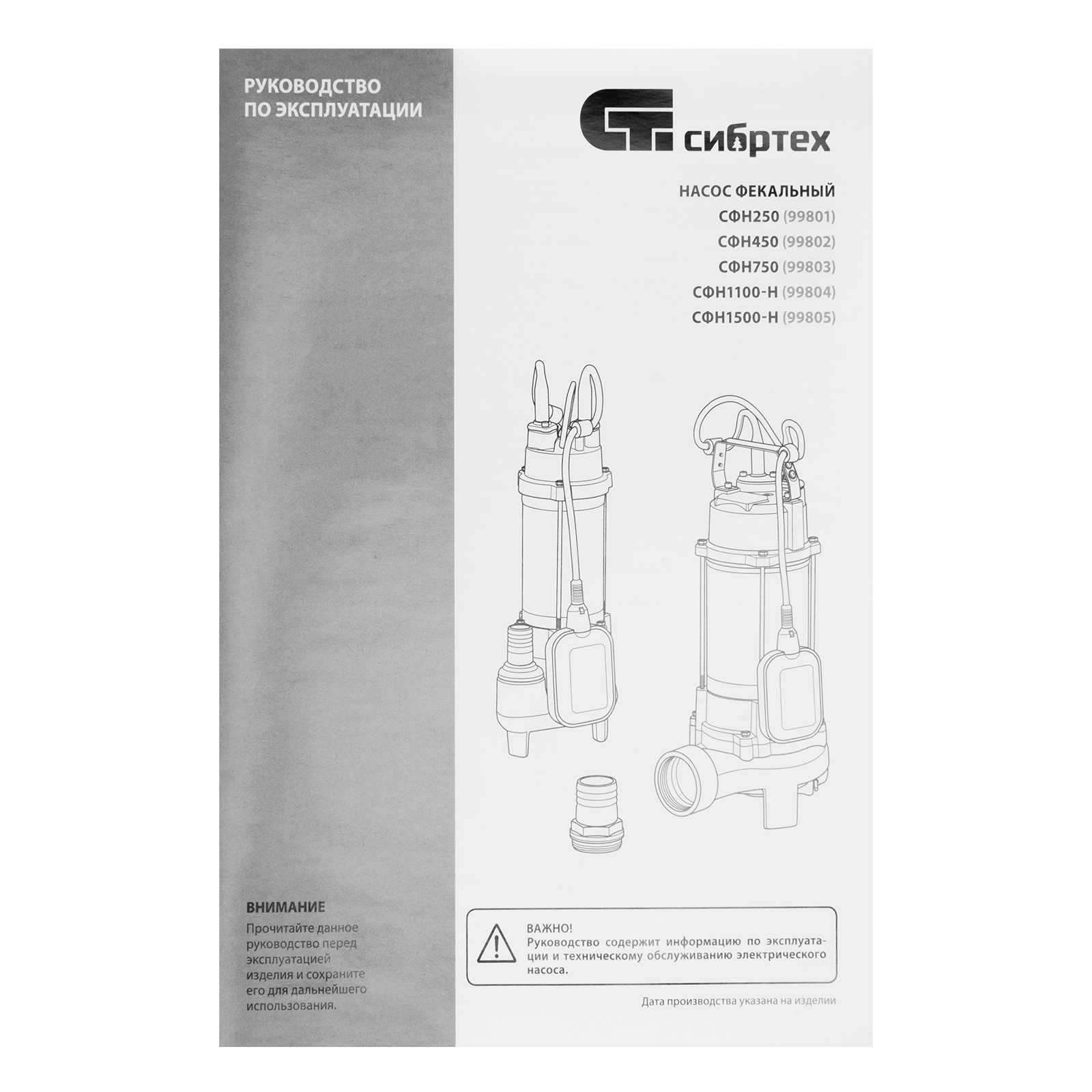 Фекальный насос СФН450, 450 Вт, напор 15 м, 21000 л/ч Сибртех в Краснодаре