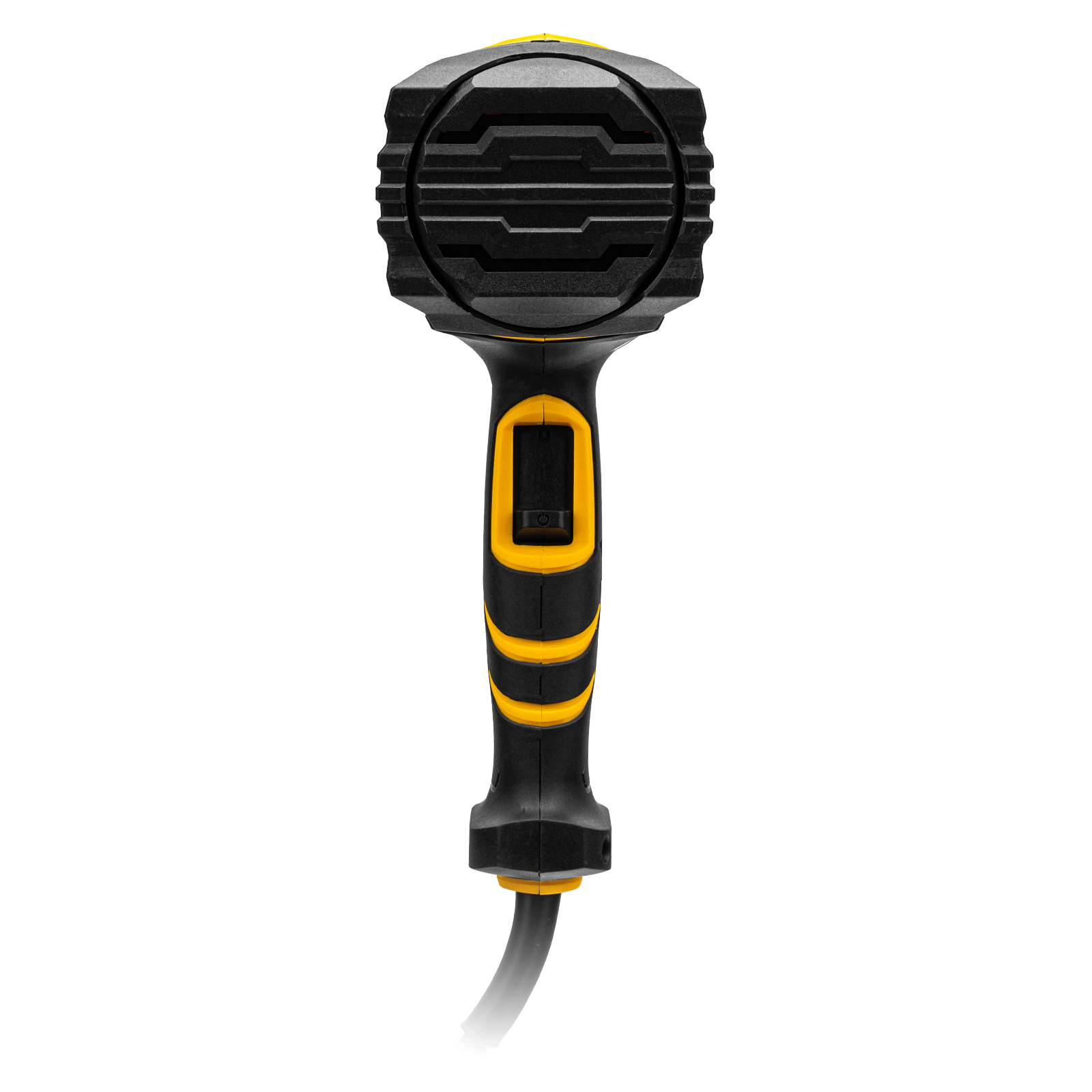 Фен технический Denzel HGH-2000 28002 мощностью 2000 Вт поддерживает 2 режима работы, обеспечивая стабильную производительность на уровне 300 или 500 л/мин. В зависимости от выбранного режима рабочая температура составляет 350 °C или 600 °C. Фен позволяет просушивать и снимать лакокрасочные покрытия, производить сварку пластиковых изделий, паять и размораживать трубы, проводить дезинфекцию поверхностей с помощью потока горячего воздуха, а также решать множество других задач.