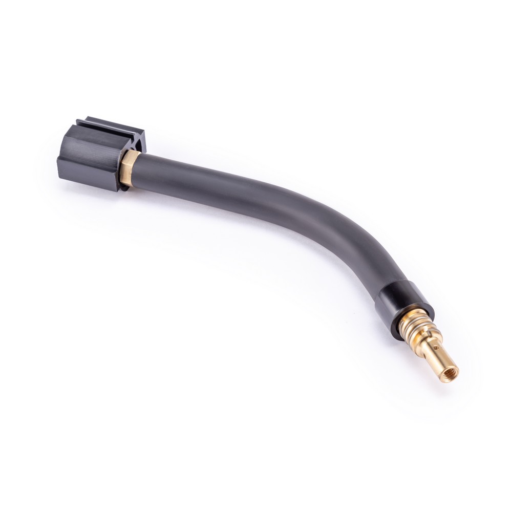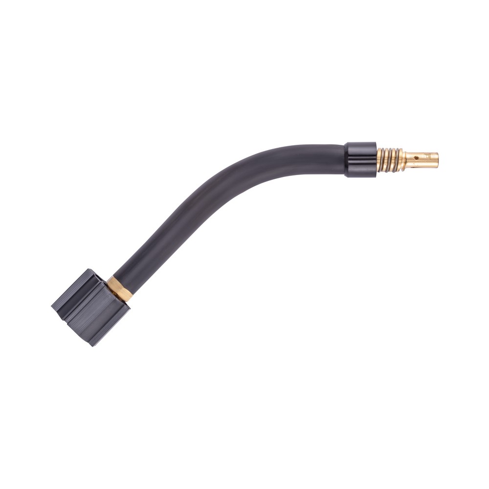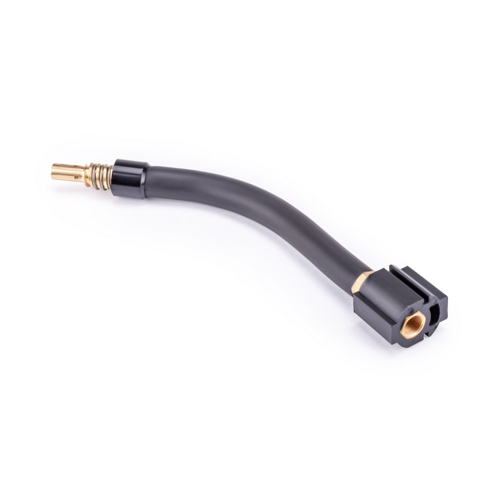 Гусак MIG-15 – один из востребованных элементов сварочной горелки для полуавтоматической сварки, связующее звено между рукояткой горелки и такими выходными частями, как сопло, наконечник и т.д., служит для передачи защитного газа и сварочной проволоки от одних элементов к другим. Гусак – сменный элемент с солидным рабочим ресурсом, который практически не выходит из строя, разве что из-за небрежной эксплуатации потребителем. Конструкция позволяет производить его быструю замену на любой другой: например, для сварки в труднодоступных местах можно устанавливать специальные гусаки и быстро их менять в случае необходимости. К рукоятке гусак крепится при помощи резьбового соединения.
