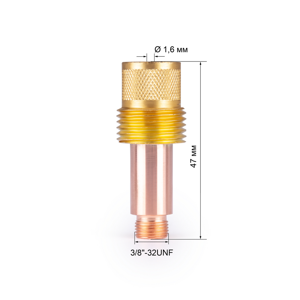 Резьба для присоединения к головке сварочной горелки 3/8"-32UNF.