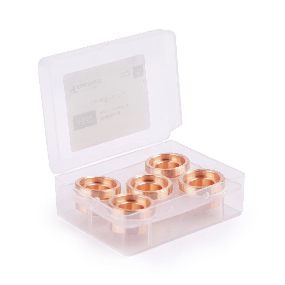 Сопло D 1,6 обеспечивает создание устойчивой дуги плазмы. Главными достоинствами данной комплектующей части горелки являются долговечность, высокое качество реза и удобство установки. Все это достигается благодаря оригинальному конструктивному решению и использованию медного сплава специальной марки.
