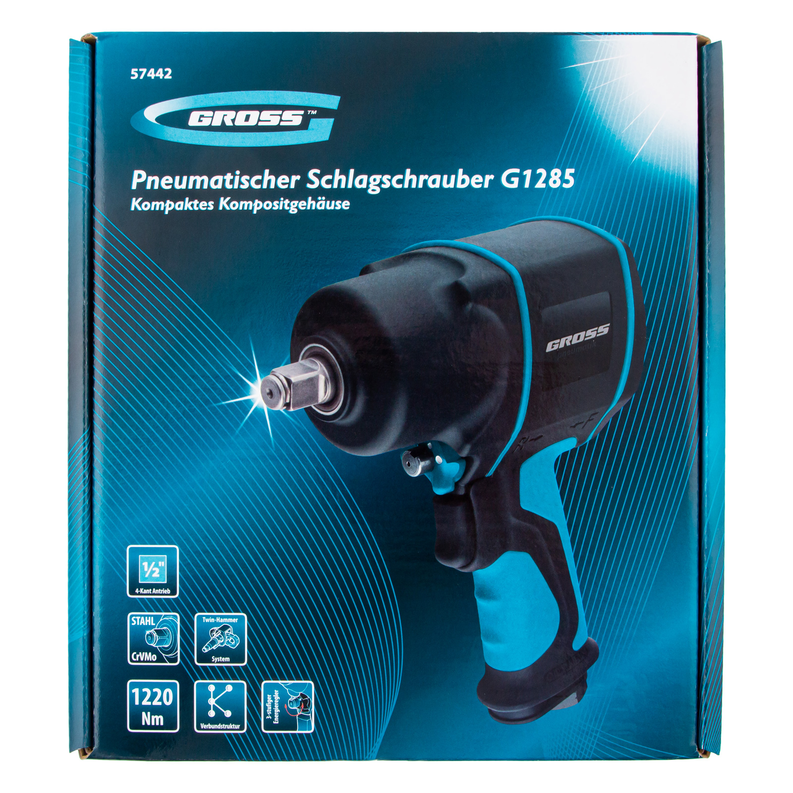 Гайковерт пневматический ударный G1285, 1/2, Twin Hammer, 1220Нм, 6500 об/мин, композитный Gross в Краснодаре