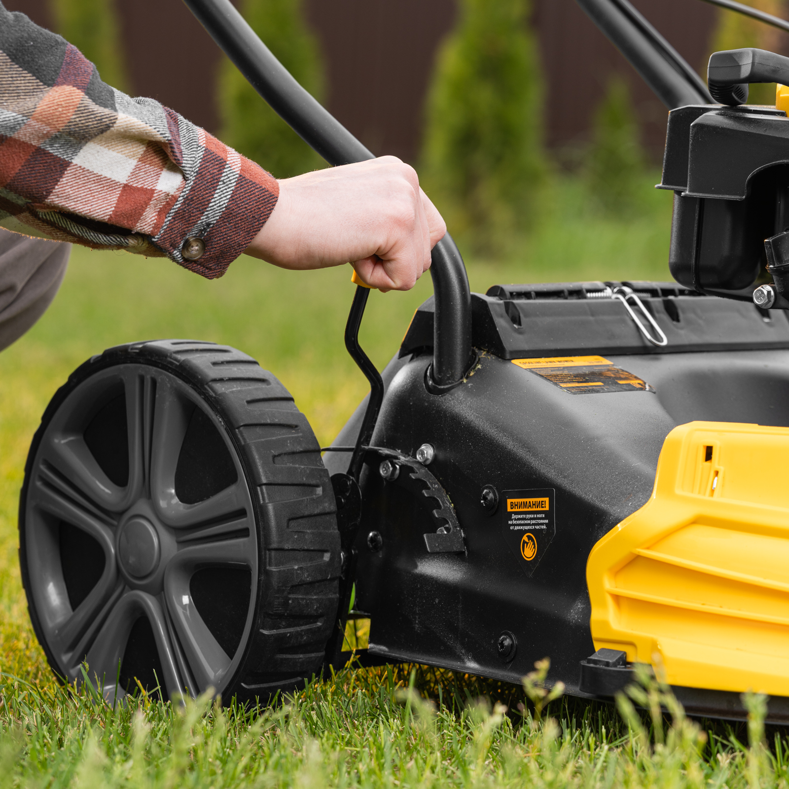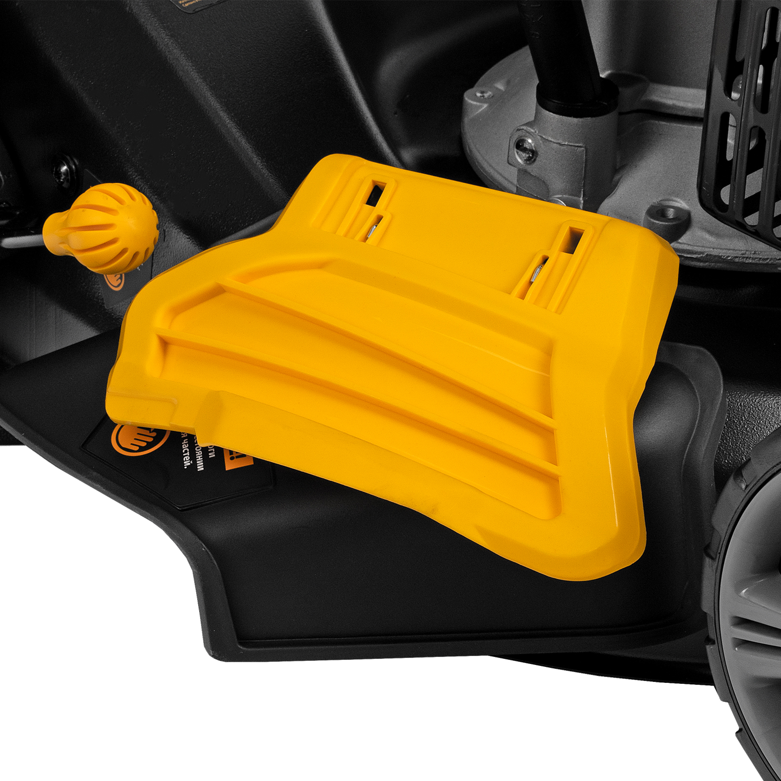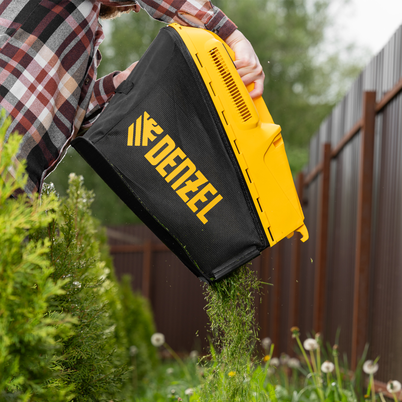 Двигатель Denzel обеспечивает высокую скорость вращения ножа 3000 об/мин, разумно потребляя топливо. Одного бака хватает на 40-60 минут работы. Ширина скашивания травы за один проход составляет 46 см — таким образом, за 1,5 часа Вы обработаете около 2500 м2. Косилка формирует газон высотой от 25 до 75 мм. Всего доступно 7 уровней скашивания, поэтому можно создать как спортивную площадку, так и элитный партерный газон.