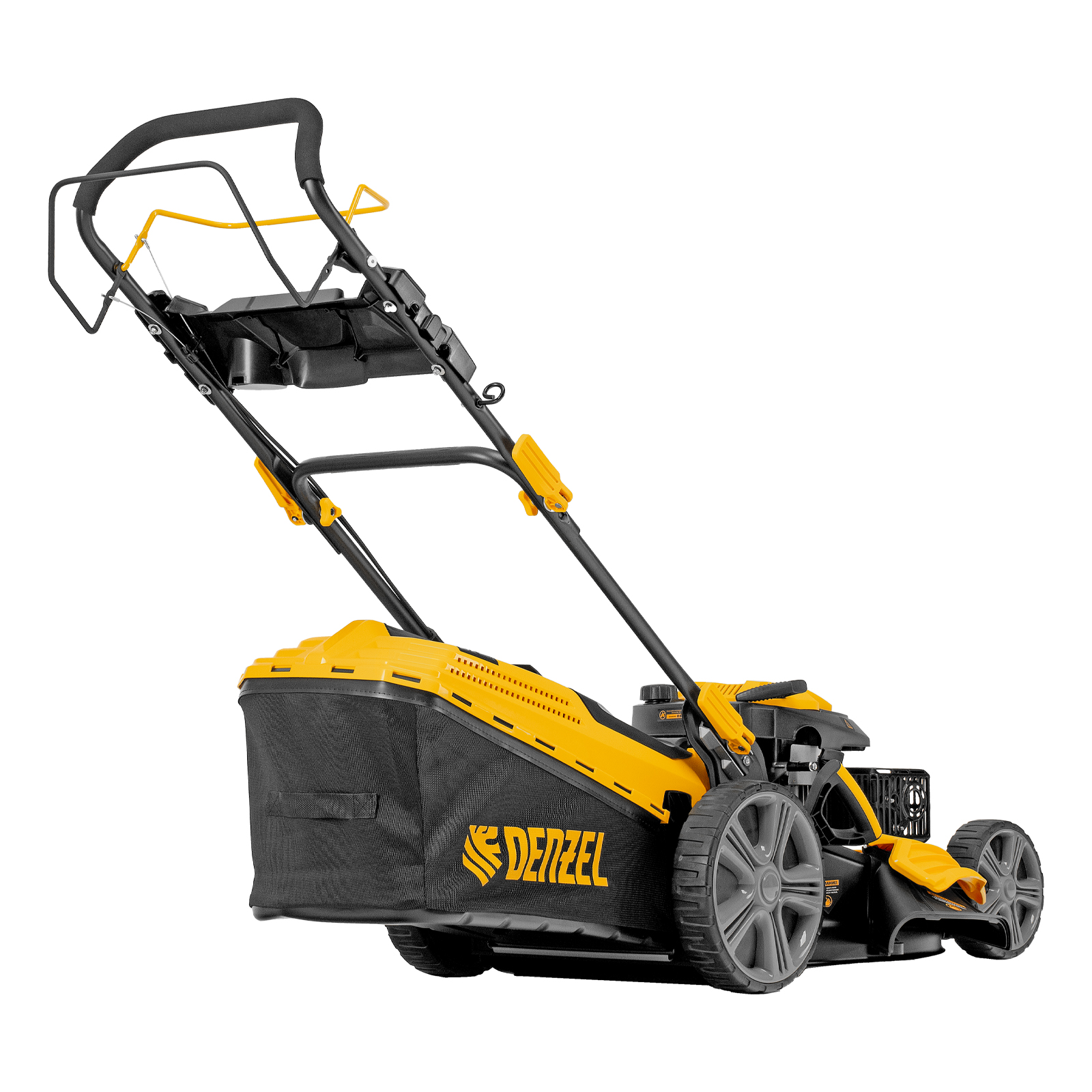 Бензиновая газонокосилка Denzel GLD-520SP 58804 с приводом оснащена двигателем объемом 196 см3, травосборником на 60 л и обеспечивает ширину скашивания 52 см за один проход. Предназначена для скашивания газонной травы на приусадебном участке. Мощности изделия в 6,5 л. с. достаточно для облагораживания даже поросшей бурьяном территории или участков со стеблями. Ширина скашивания в 52 см позволяет эффективно обработать 3700 м2 всего за 2 часа.