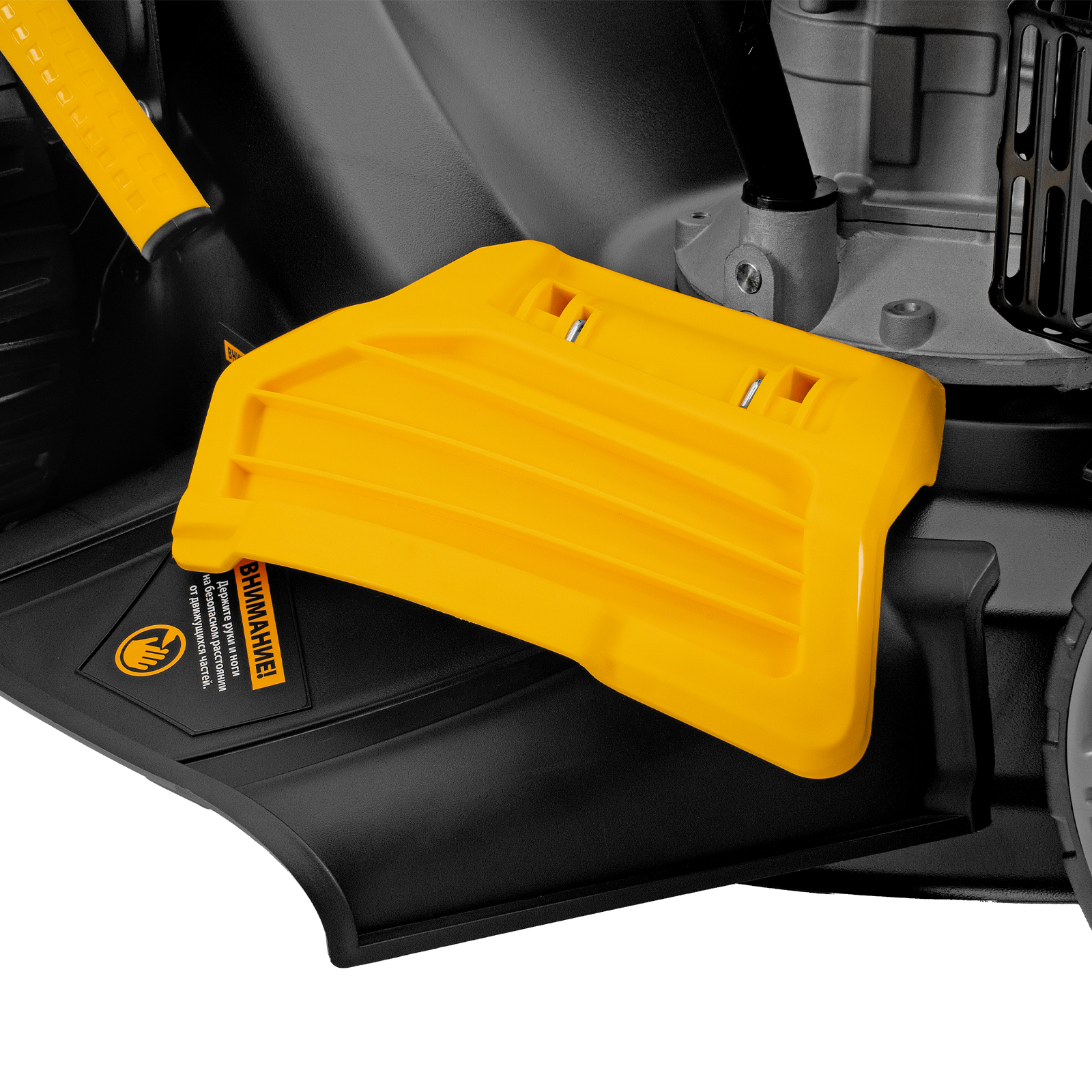- Очистка без труда — машина оснащена штуцером очистки со шлангом для удаления травы и грязи с внутренней полости (система Quick Clean).