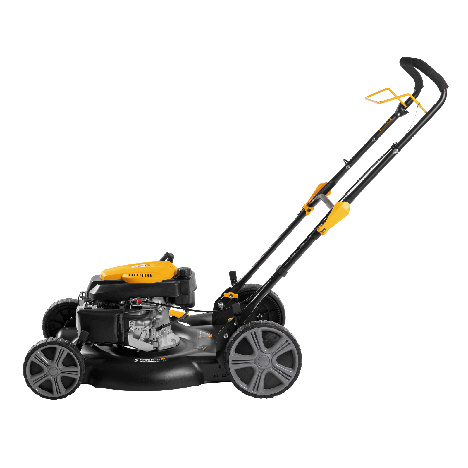 - 5 уровней скашивания в диапазоне 30-80 мм — можно создать несколько типов газона, например, спортивный или садово-парковый