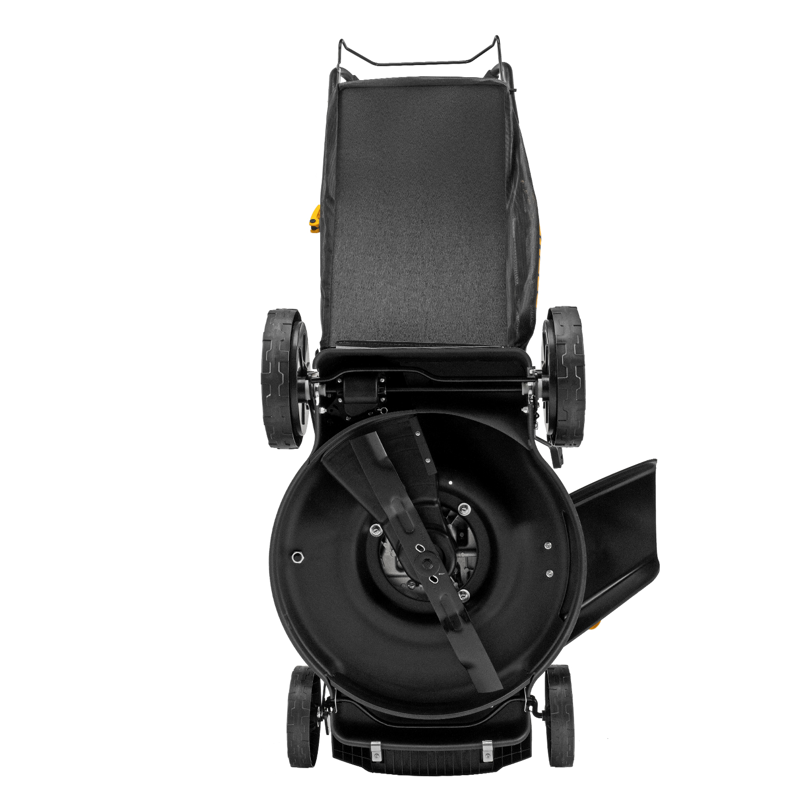 - Оптимизированная геометрия деки — прочный корпус изготовлен таким образом, чтобы срезанная трава быстрее и легче попадала в травосборник.