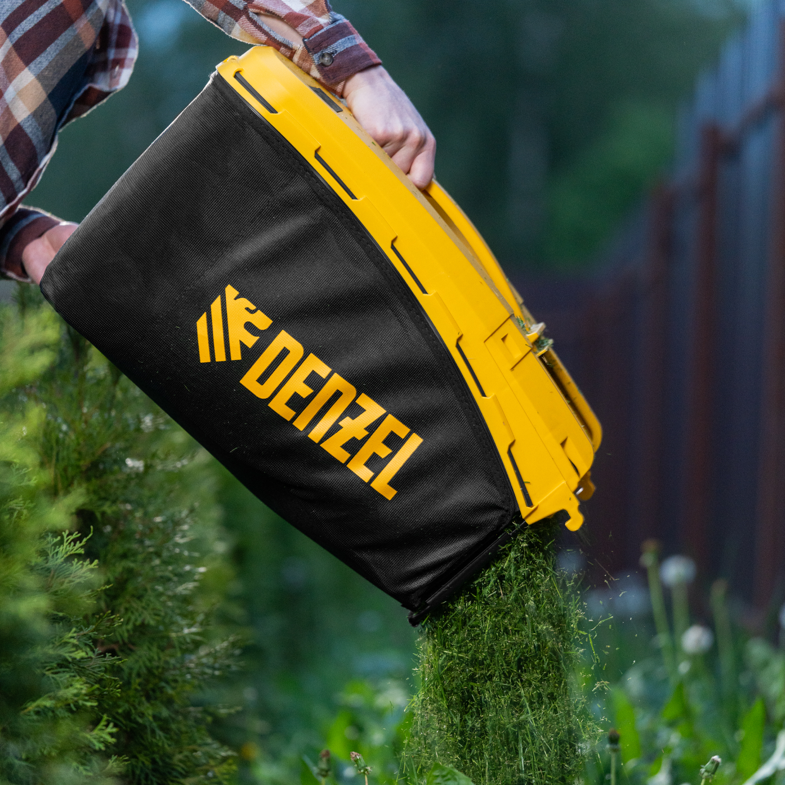 - Комбинированный травосборник на 65 л — сочетание пластика и мягкой ткани делает его легким и простым в уходе, трава в нем не перегнивает.
