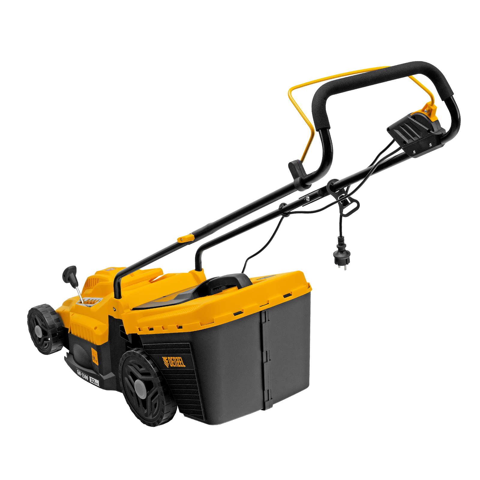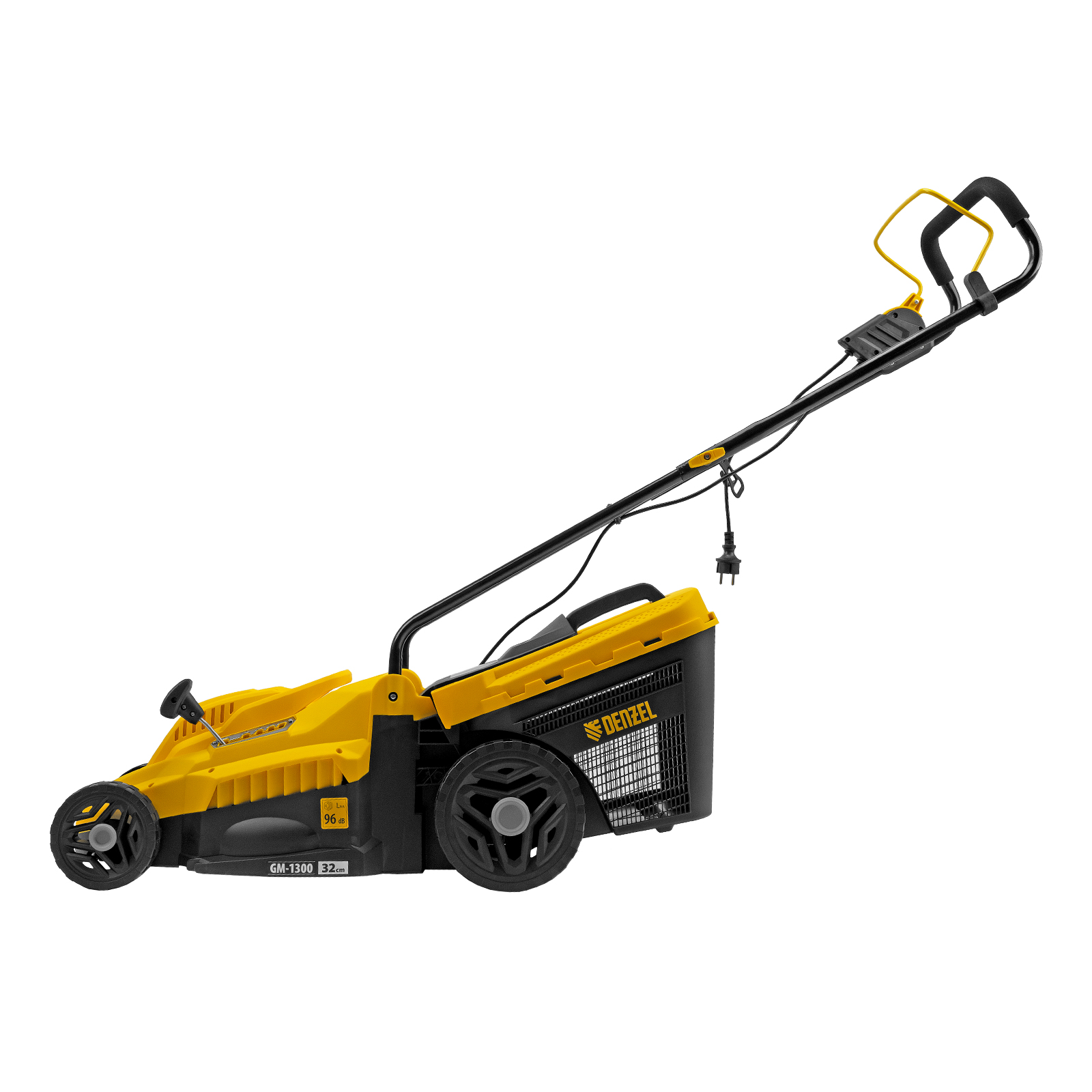 Газонокосилка электрическая Denzel GM-1300 96627 мощностью 1300 Вт, с травосборником объемом 35 л и 5 уровнями скашивания, обеспечивает ширину прохода 32 см и предназначена для стрижки газонов, кошения травы в саду и на небольшом приусадебном участке. Предусмотрена 5-ступенчатая регулировка высоты скашивания (от 30 до 70 мм) в зависимости от типа газона. Газонокосилка проста в управлении и обслуживании, с ней легко справится неопытный пользователь.