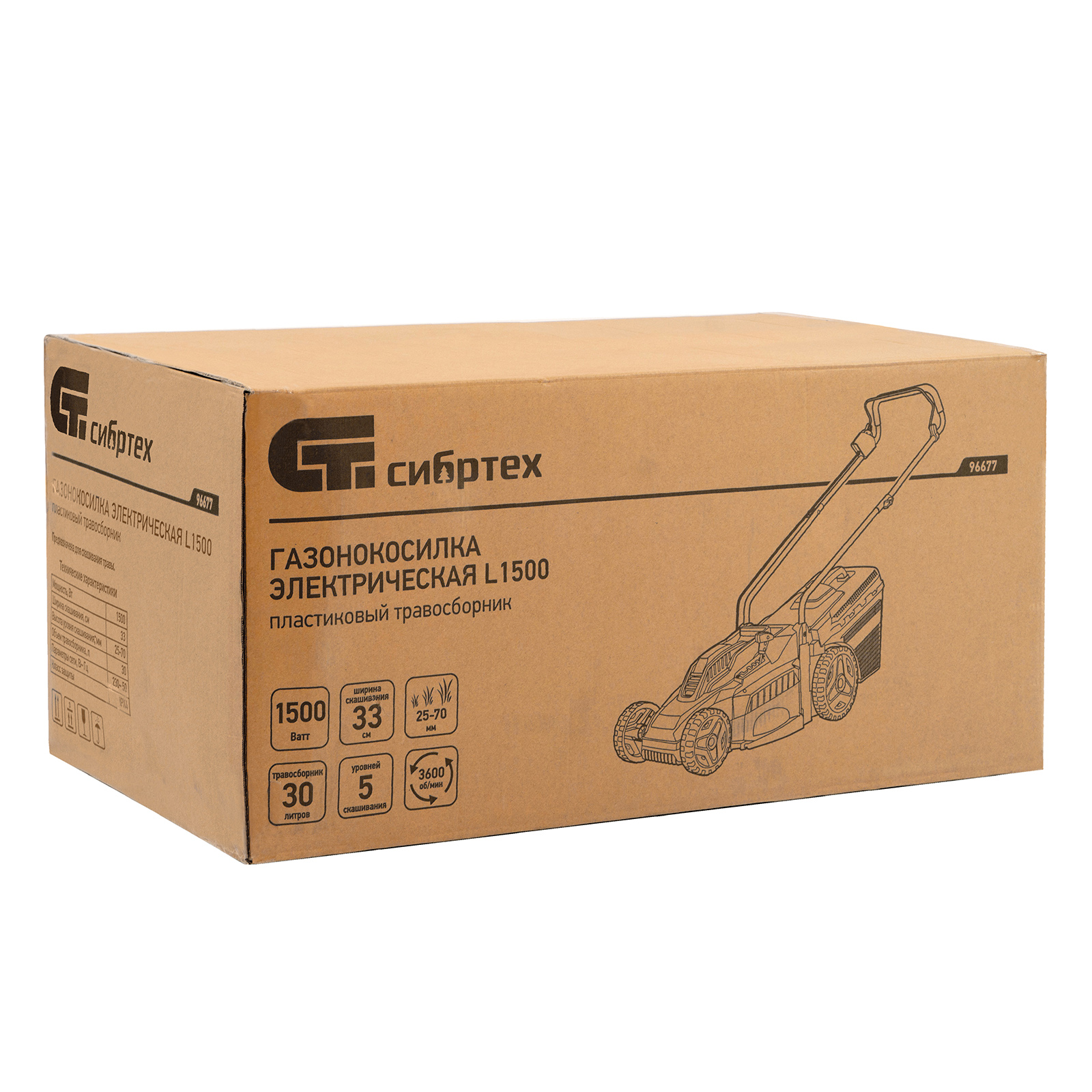 Электрическая газонокосилка Сибртех L1500 96677 мощностью 1500 Вт, с 5 уровнями скашивания, с травосборником объемом 35 л, предназначена для подрезания невысокой травы. Ширина прохода 33 см и мощность мотора 1,5 кВт позволяют за 1 час обрабатывать почти 1200 кв.м.,Косилка не наносит ущерб природе и проста в применении, т.к. работает без масла и топлива, а ее обслуживание сведено к нескольким простым шагам. Именно поэтому она подходит даже начинающим пользователям.,Настройка высоты скашивания находится в диапазоне 30–70 мм. Перемещая рычаг в одно из 5 положений, Вы сможете создать несколько типов ландшафта на своем участке, например, партерный, садово-парковый или спортивный.