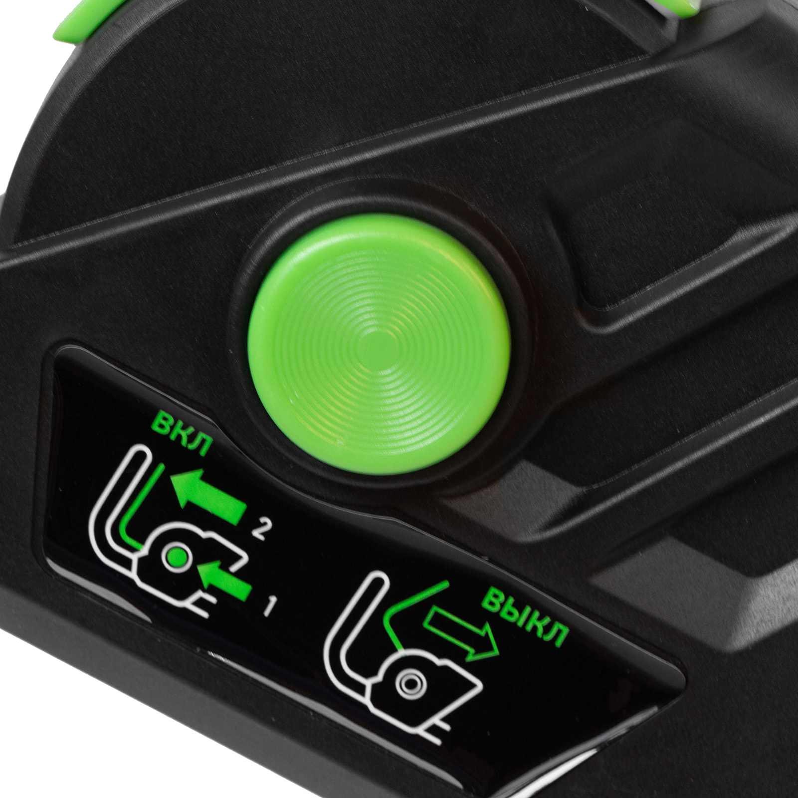 - Блокировка случайного пуска — электродвигатель включается только при длительном удержании кнопки запуска одновременно с нажатием скобы выключения.