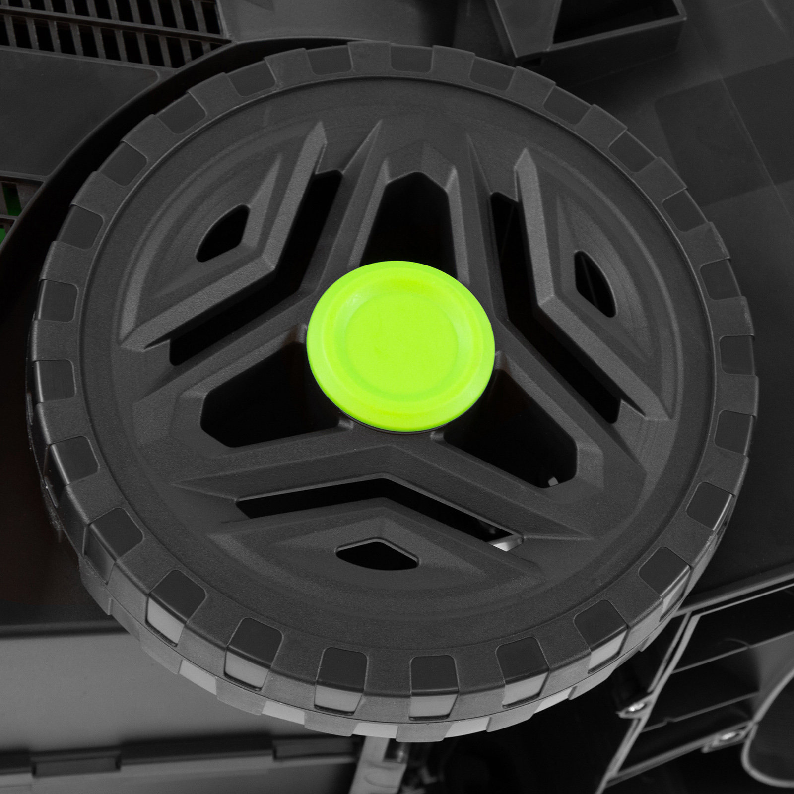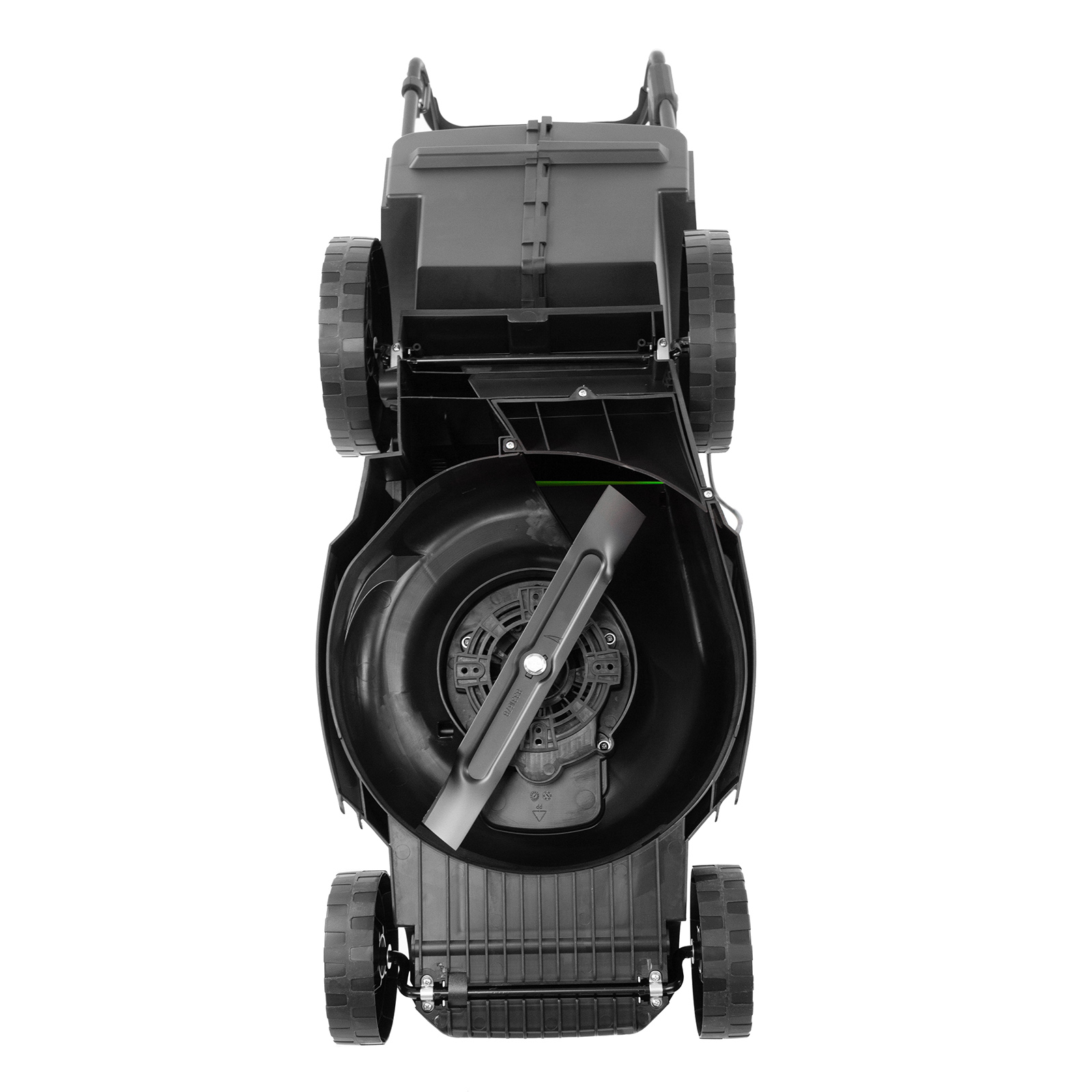 - Отдельная ручка для переноски — косилку легко поднимать за широкий пластиковый держатель.