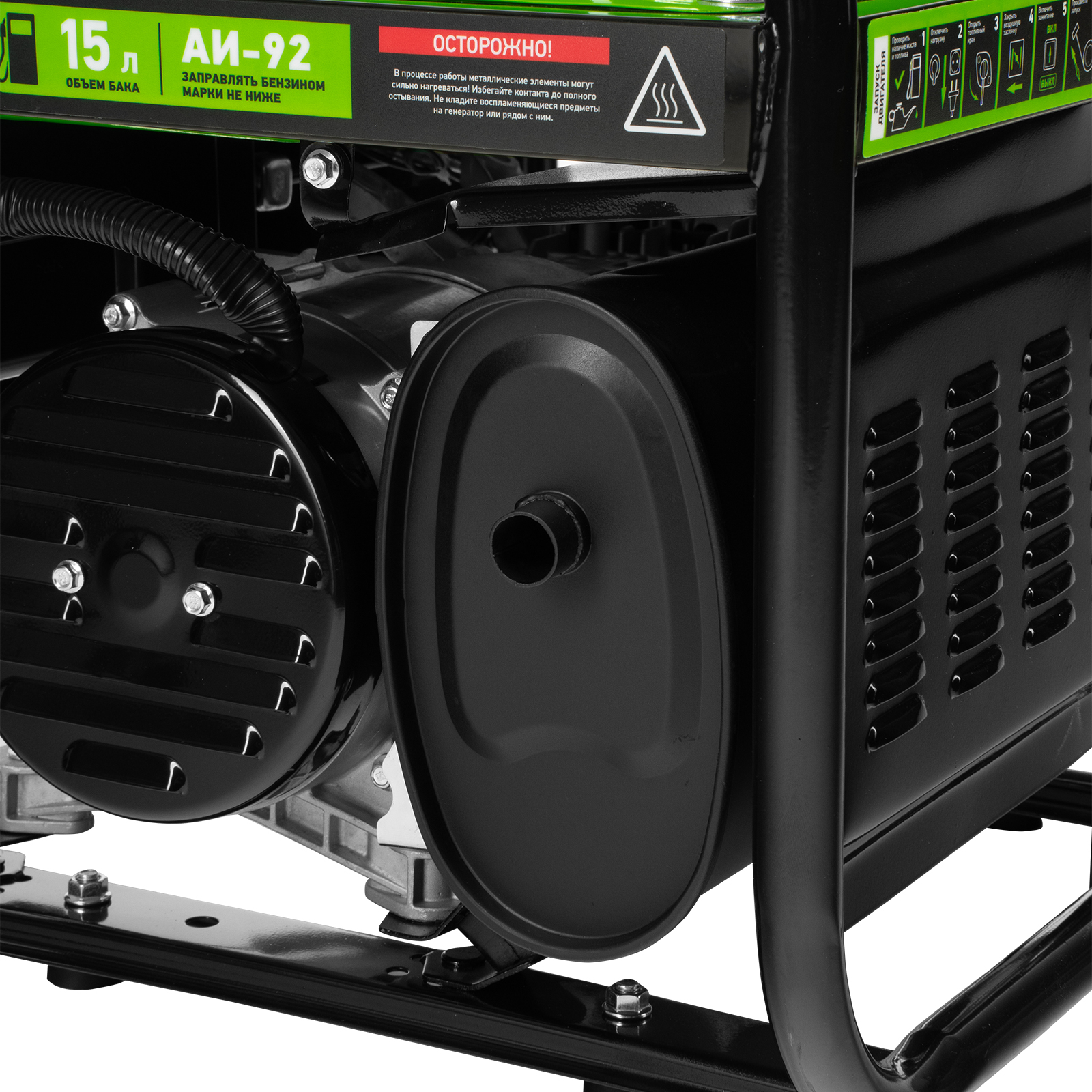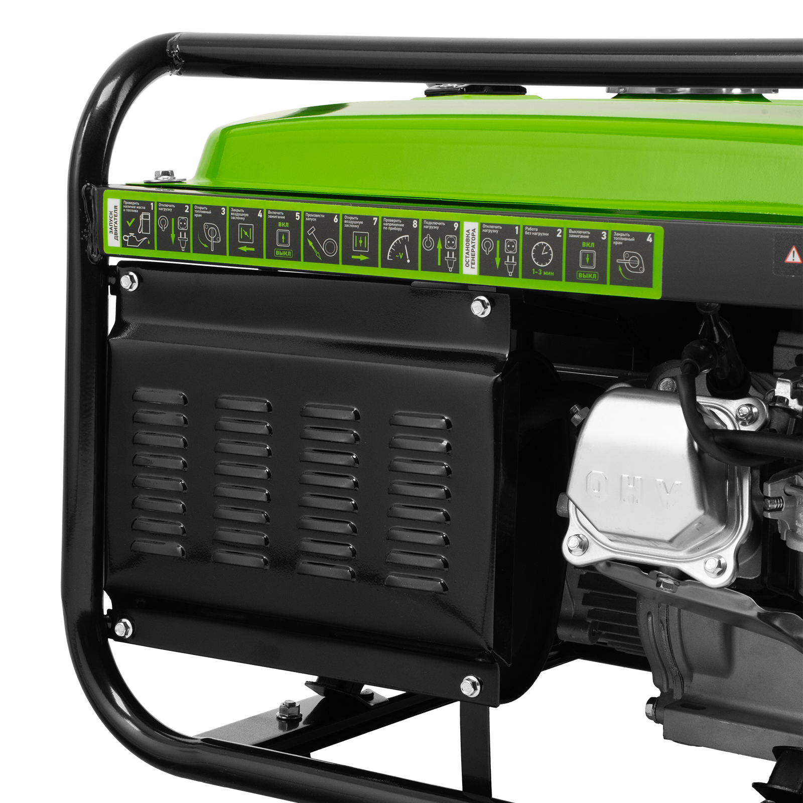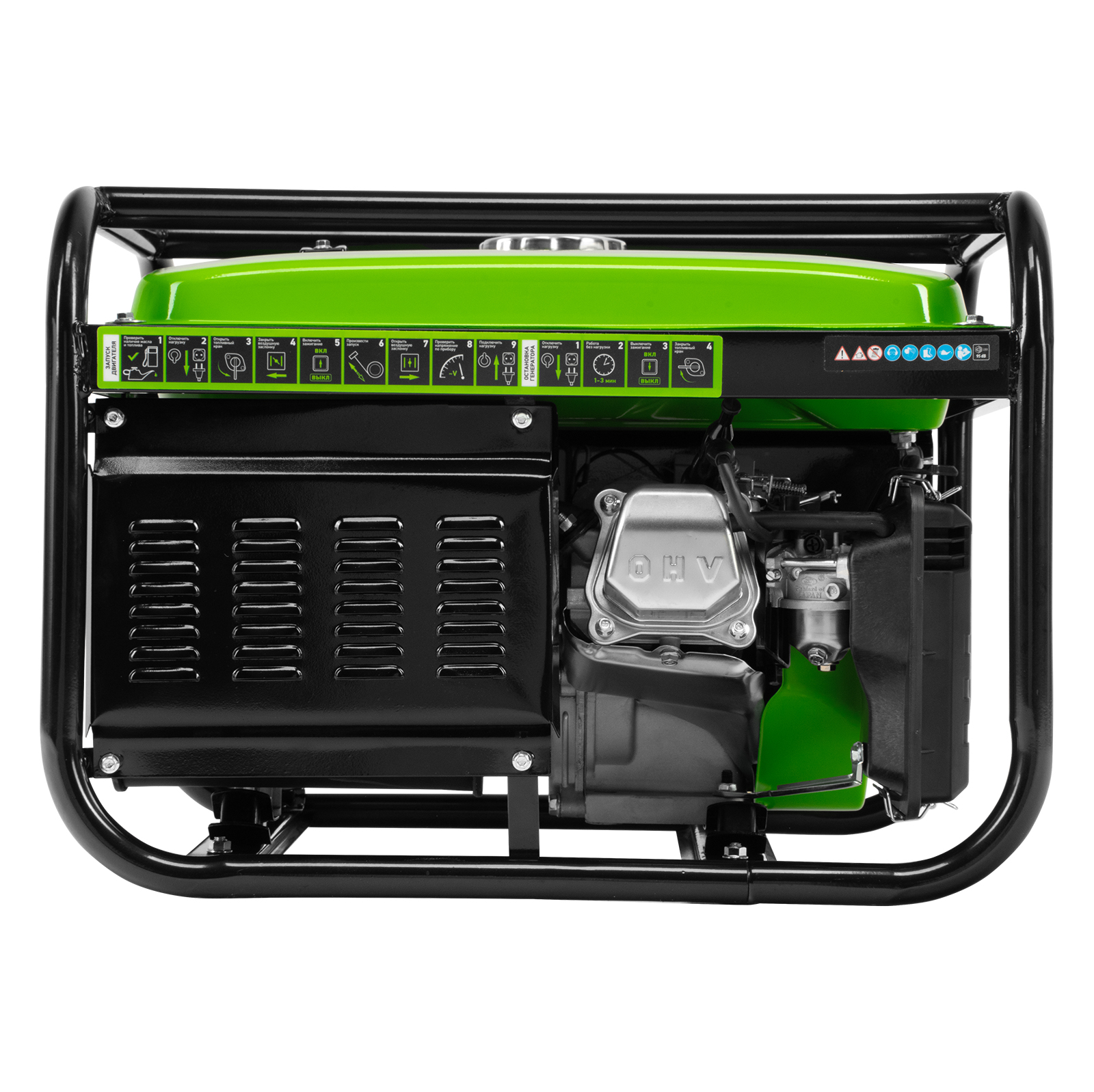 - Прочная конструкция — стальная рама надежно защищает генератор от повреждений.