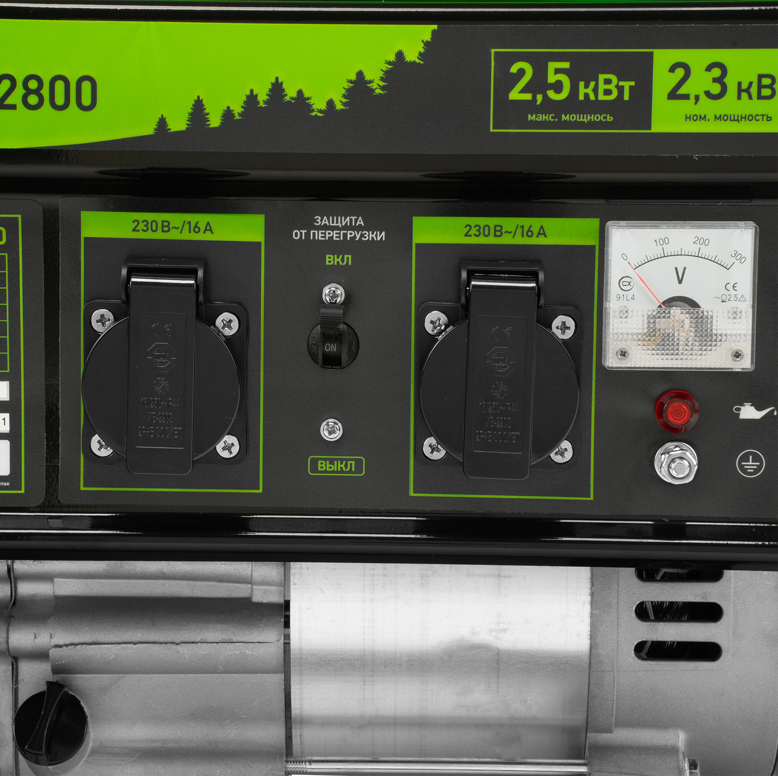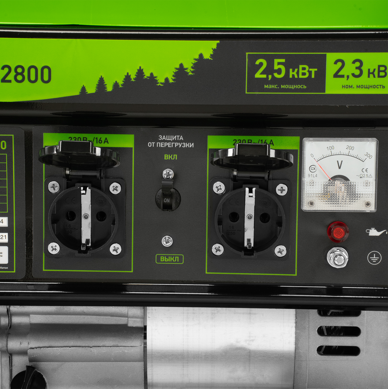 - Контроль рабочих параметров — встроенный вольтметр позволяет отслеживать напряжение в сети, а топливный индикатор — уровень бензина в баке.