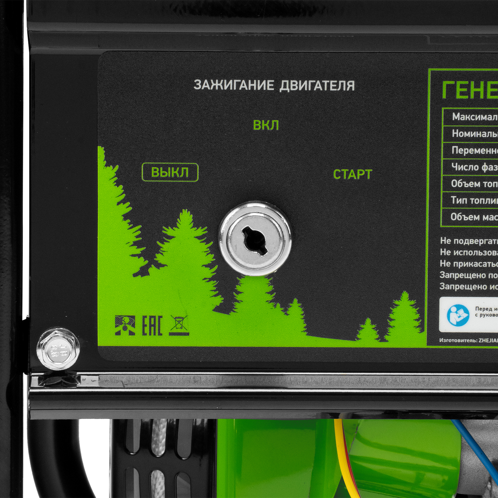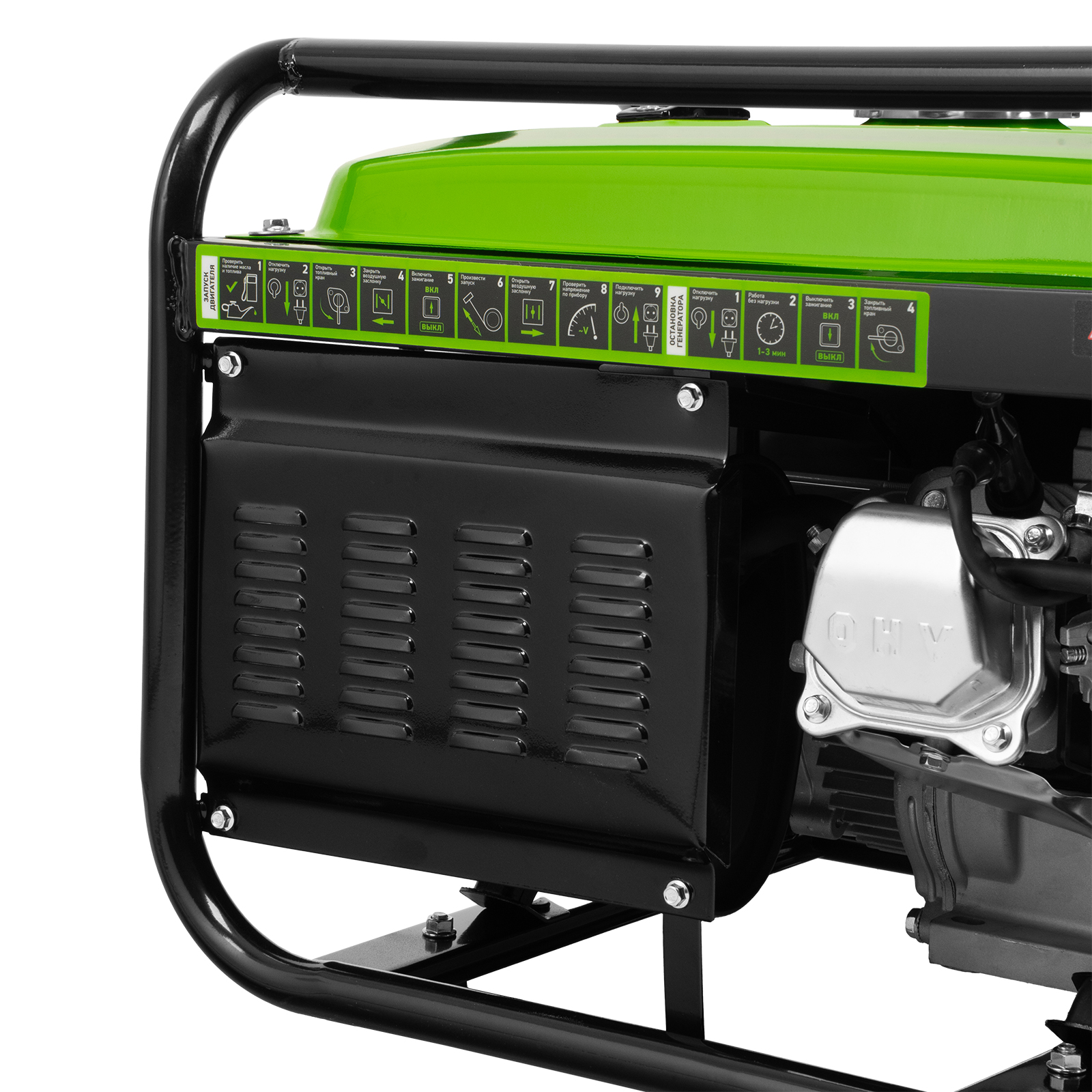 - Защита двигателя — генератор не запустится при низком уровне масла в картере.