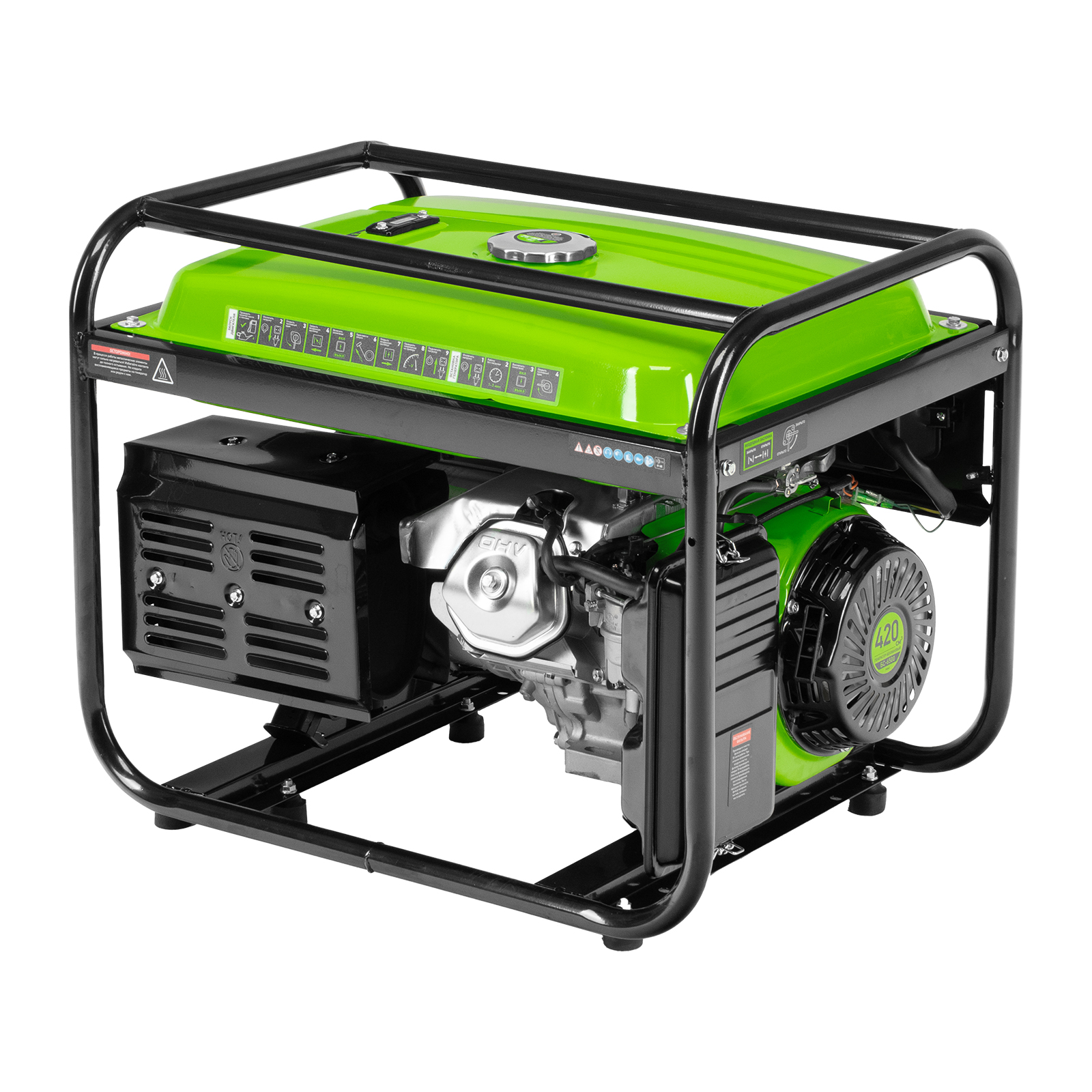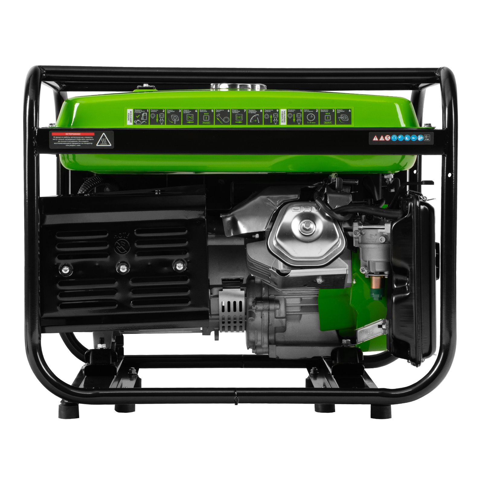 - Прочная конструкция — стальная рама надежно защищает генератор от повреждений.