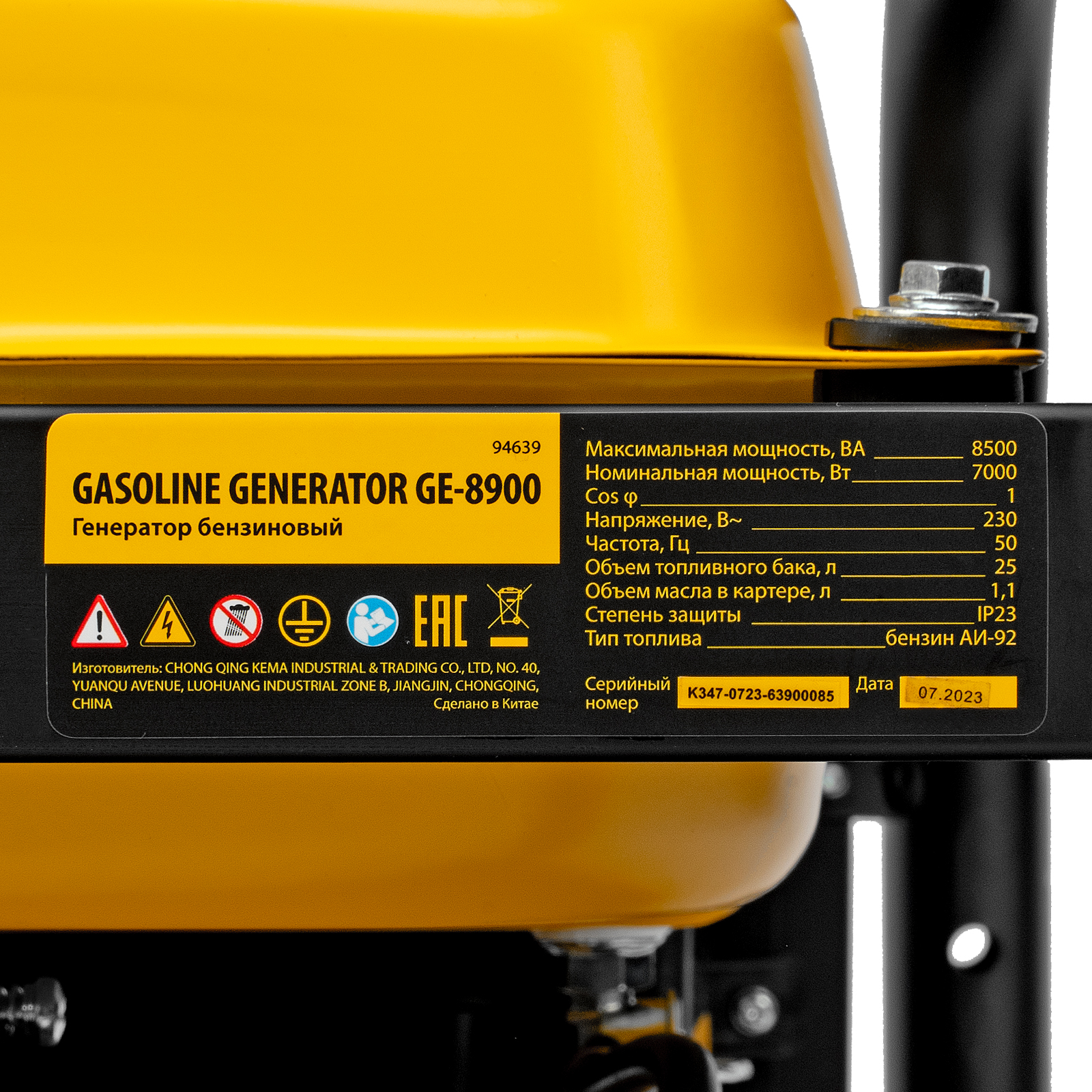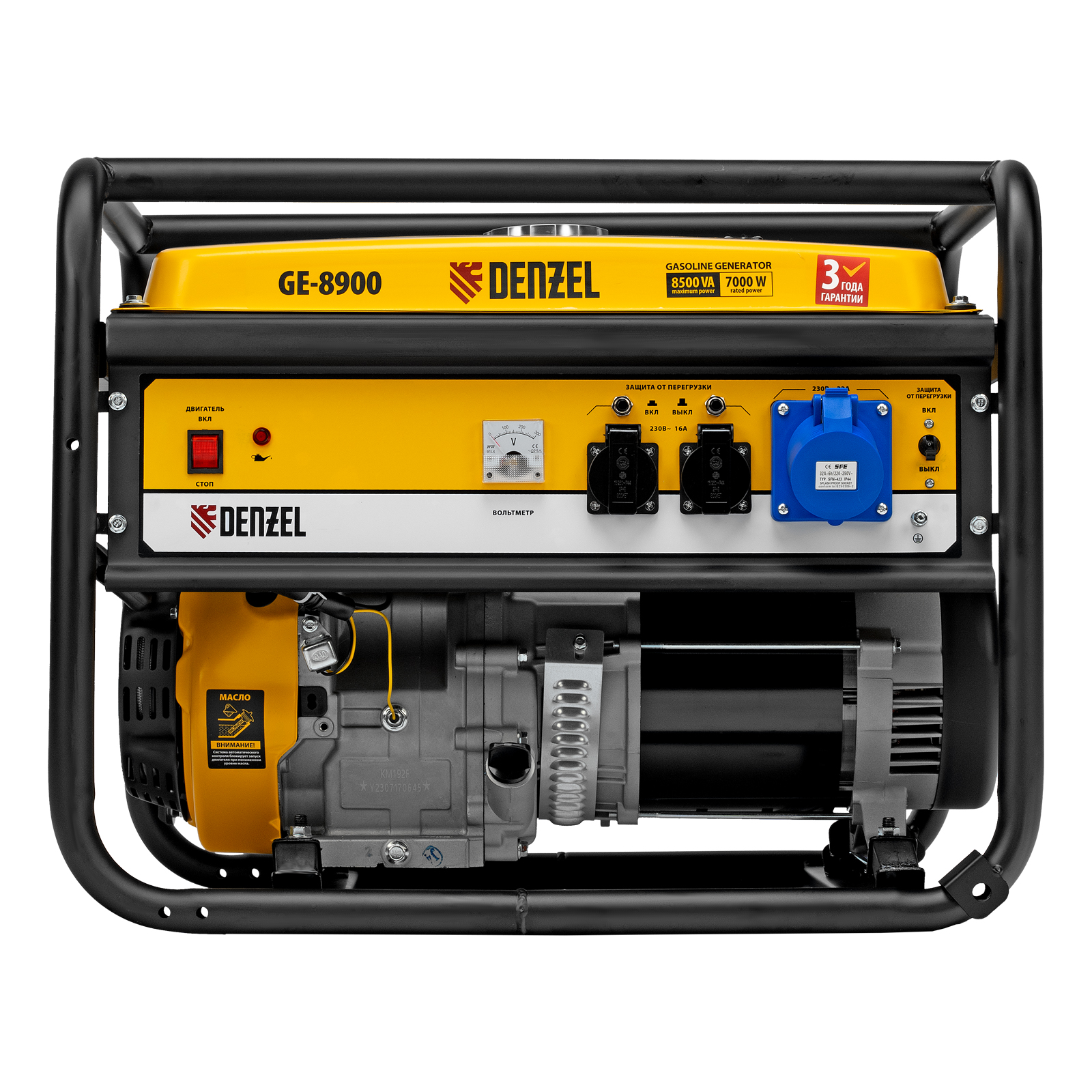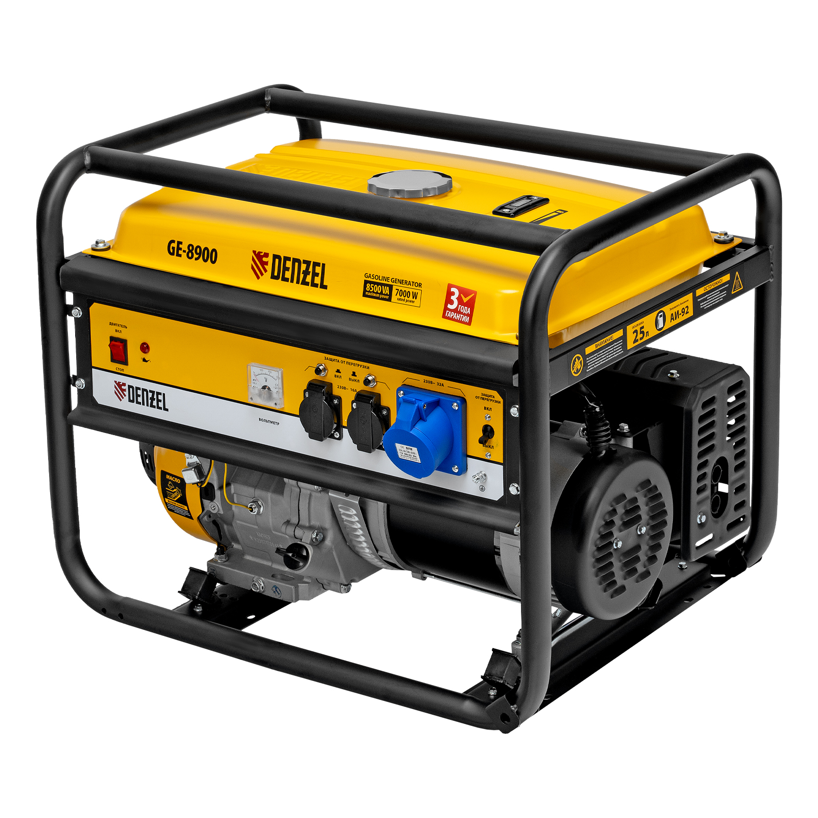 Генератор бензиновый GE 8900, 8.5 кВт, 220 В/50 Гц, 25 л, ручной старт Denzel в Краснодаре