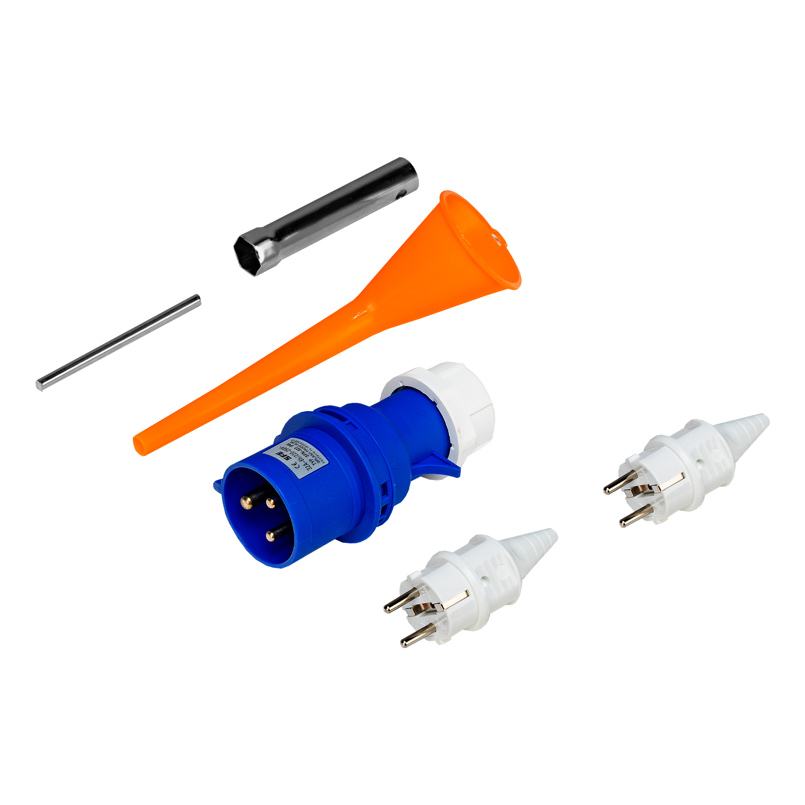 Генератор - 1 штКлюч свечной - 1 штВилка 230В/16А - 2 штВилка 230В/32А - 1 штРуководство по эксплуатации с гарантийным талоном - 1 шт |