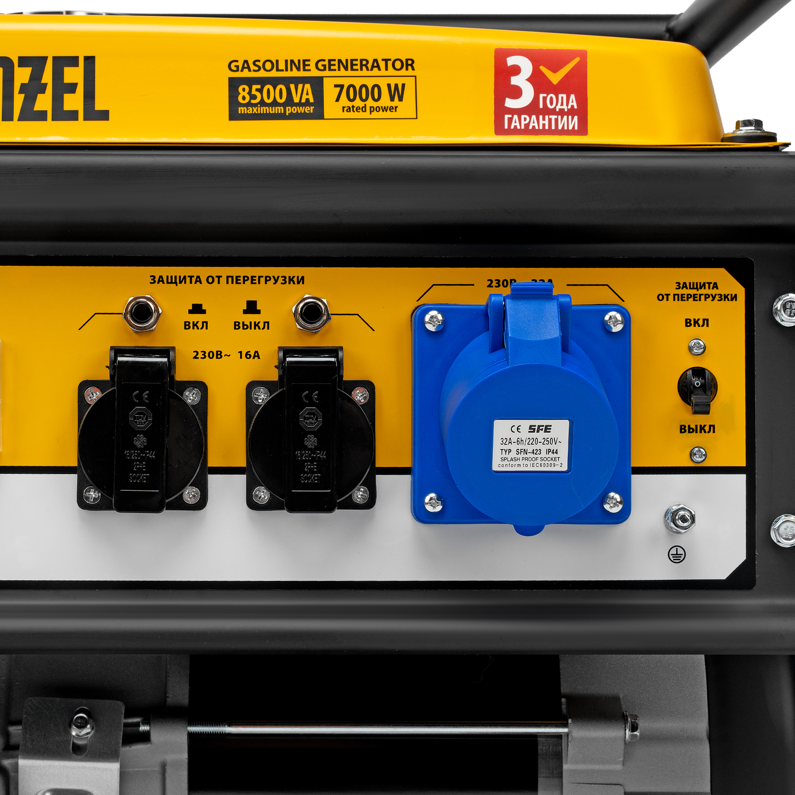 - Надежная конструкция — усиленная рама из труб диаметром 32 мм с толщиной стенок 1,5 мм защищает генератор от повреждений.