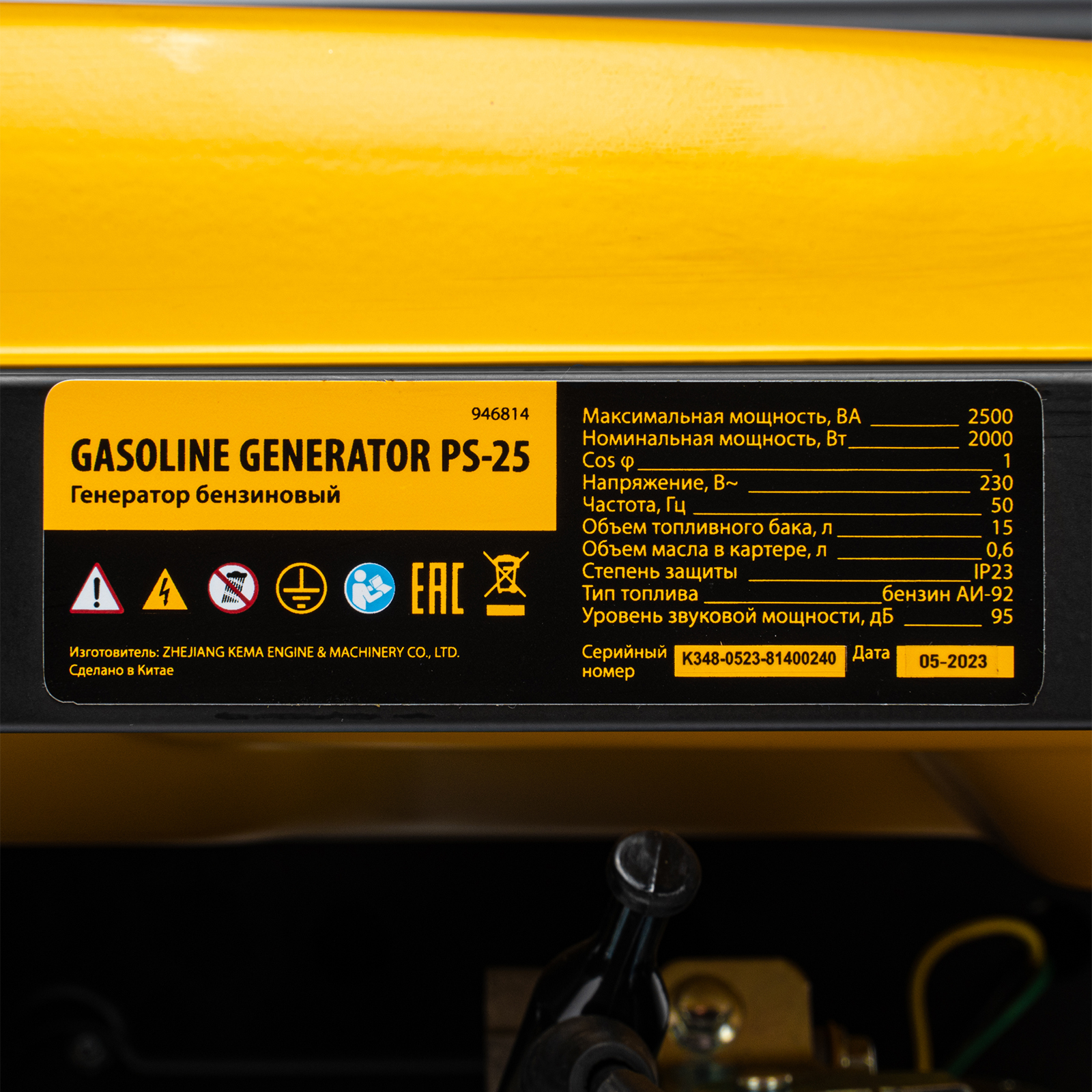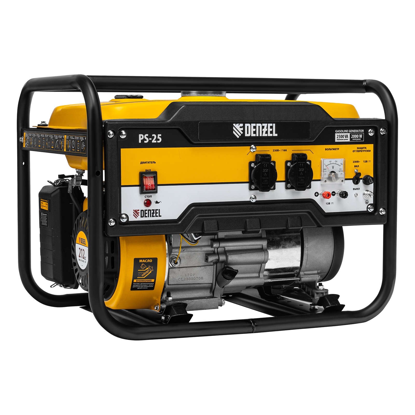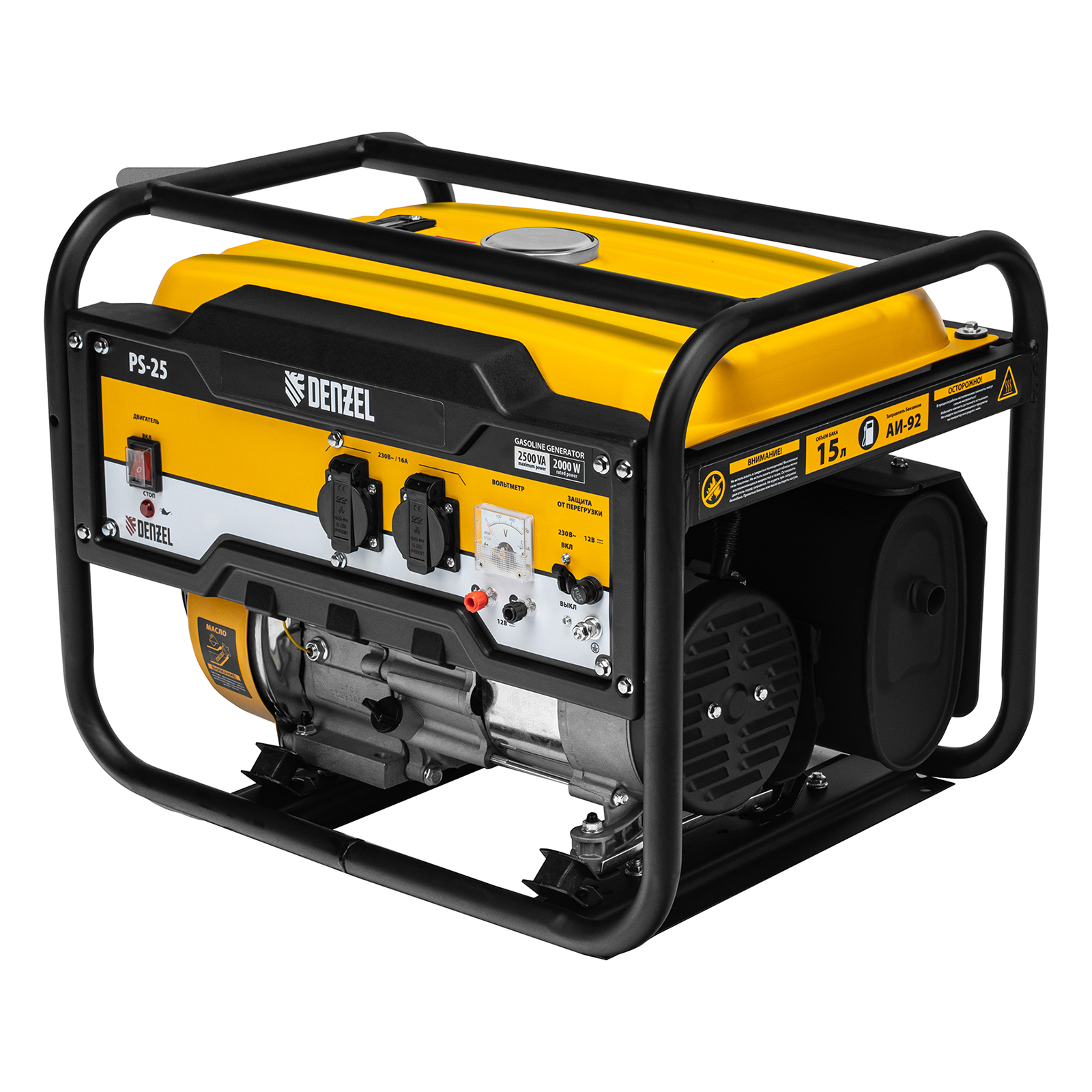 Генератор бензиновый PS 25, 2.5 кВт, 230 В, 15 л, ручной стартер Denzel в Краснодаре