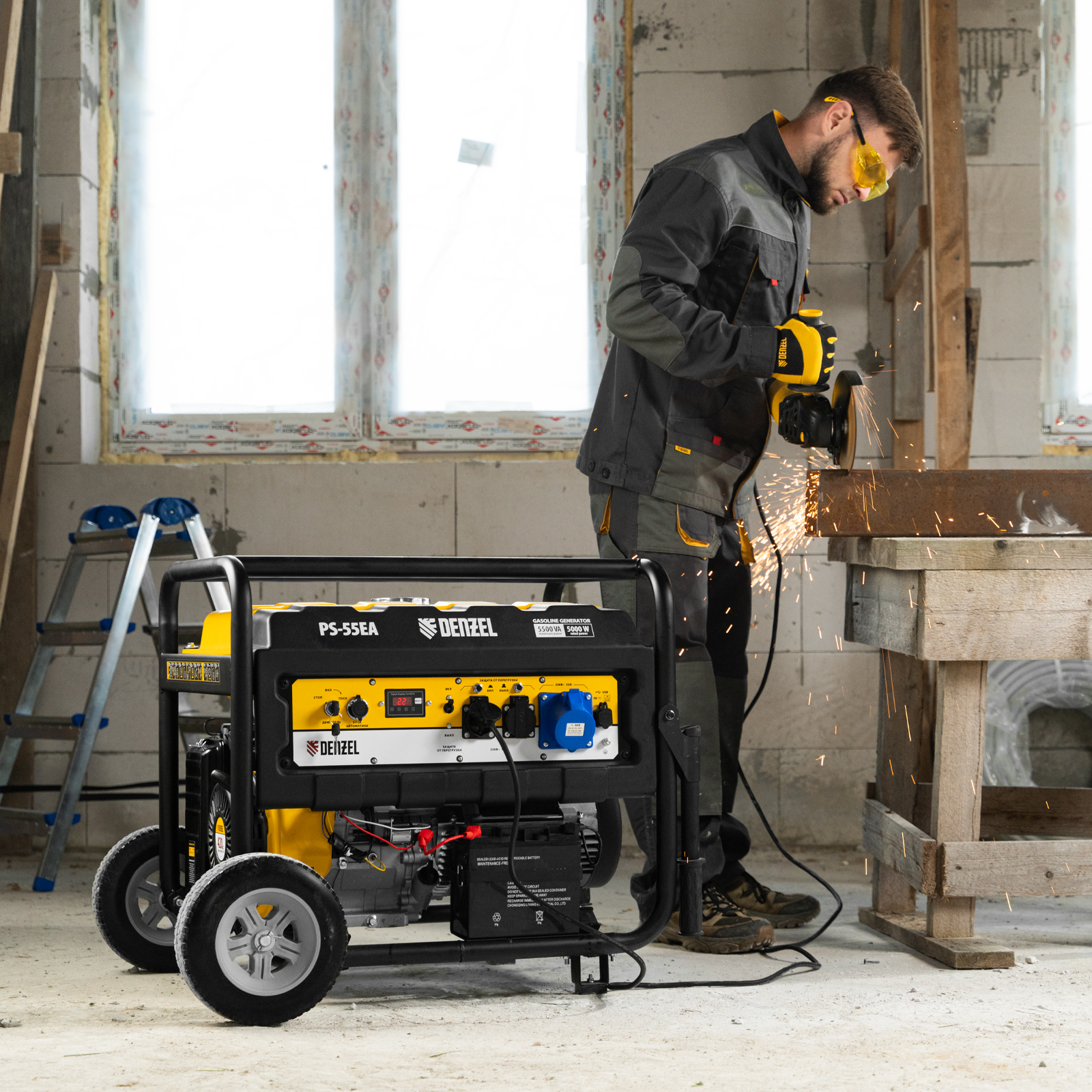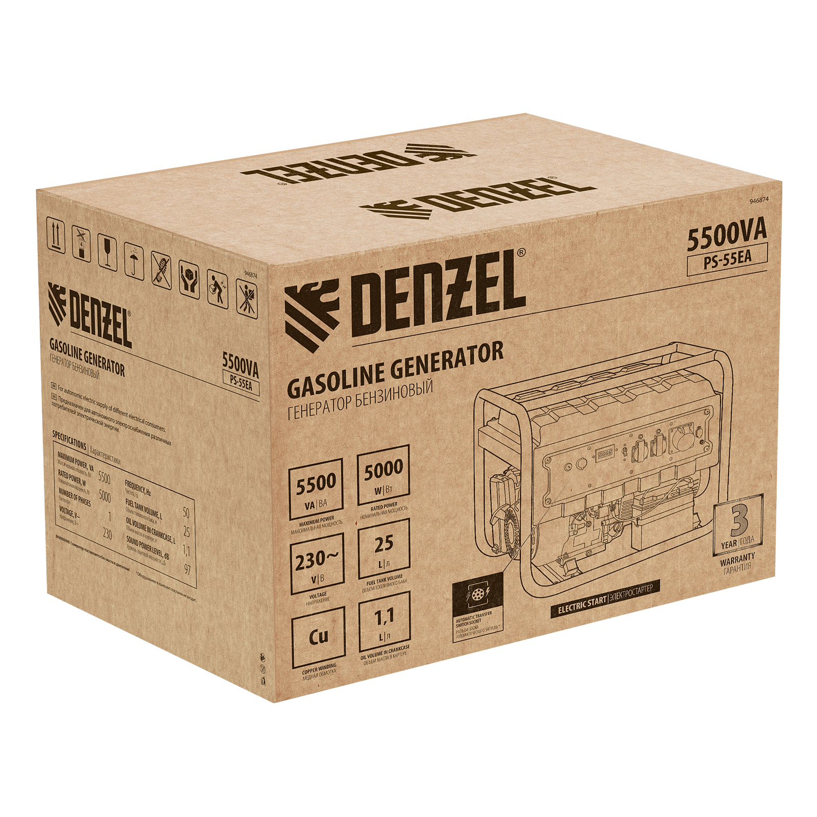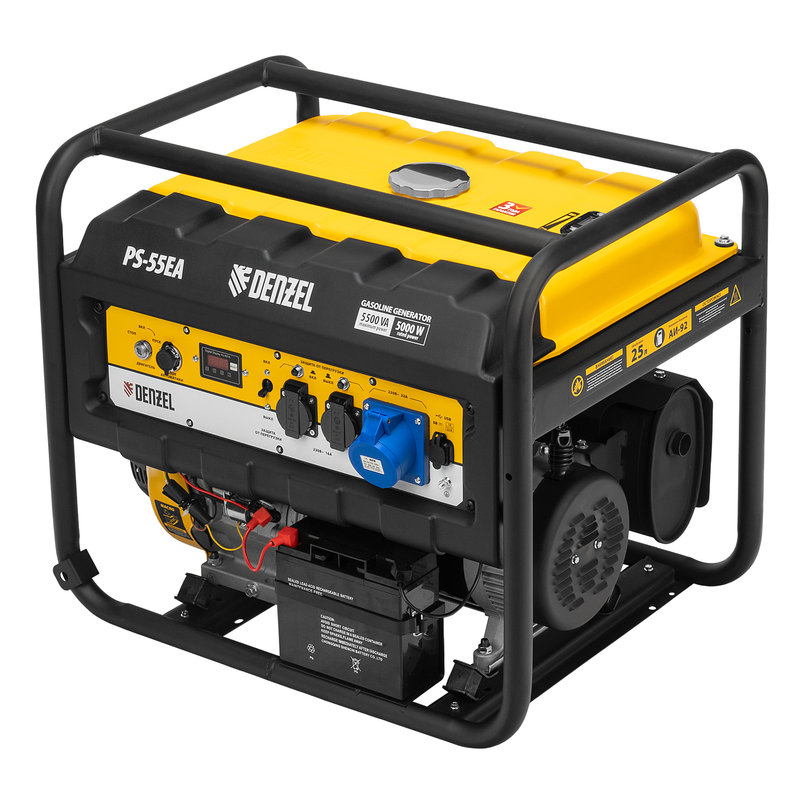 Генератор бензиновый PS 55 EA, 5.5 кВт, 230 В, 25 л, коннектор автоматики, электростартер Denzel в Краснодаре