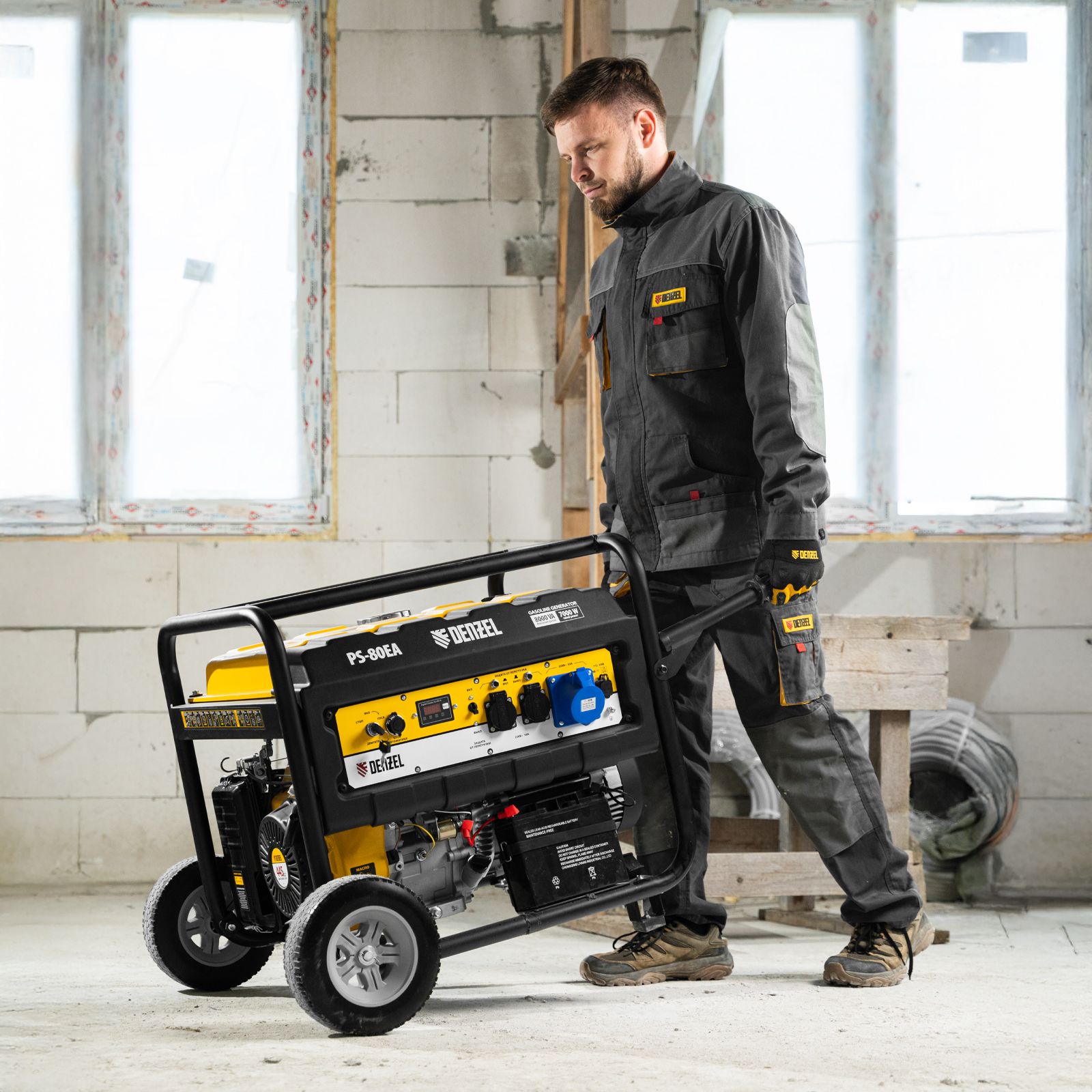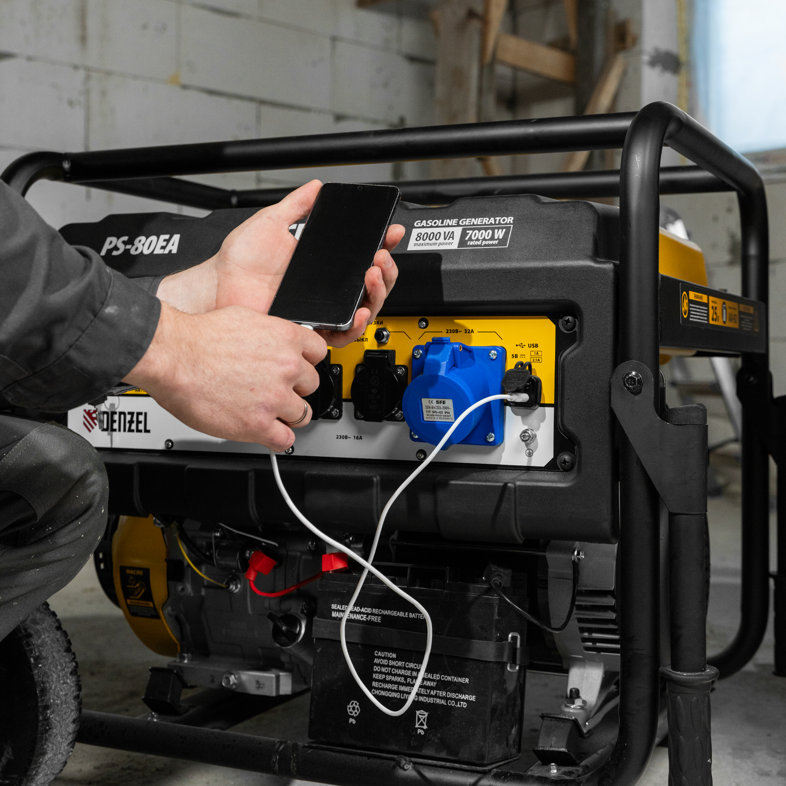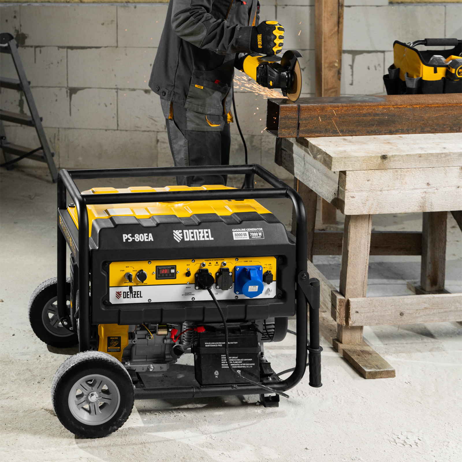 Генератор бензиновый PS 80 EA, 8.0 кВт, 230 В, 25 л, коннектор автоматики, электростартер Denzel в Краснодаре