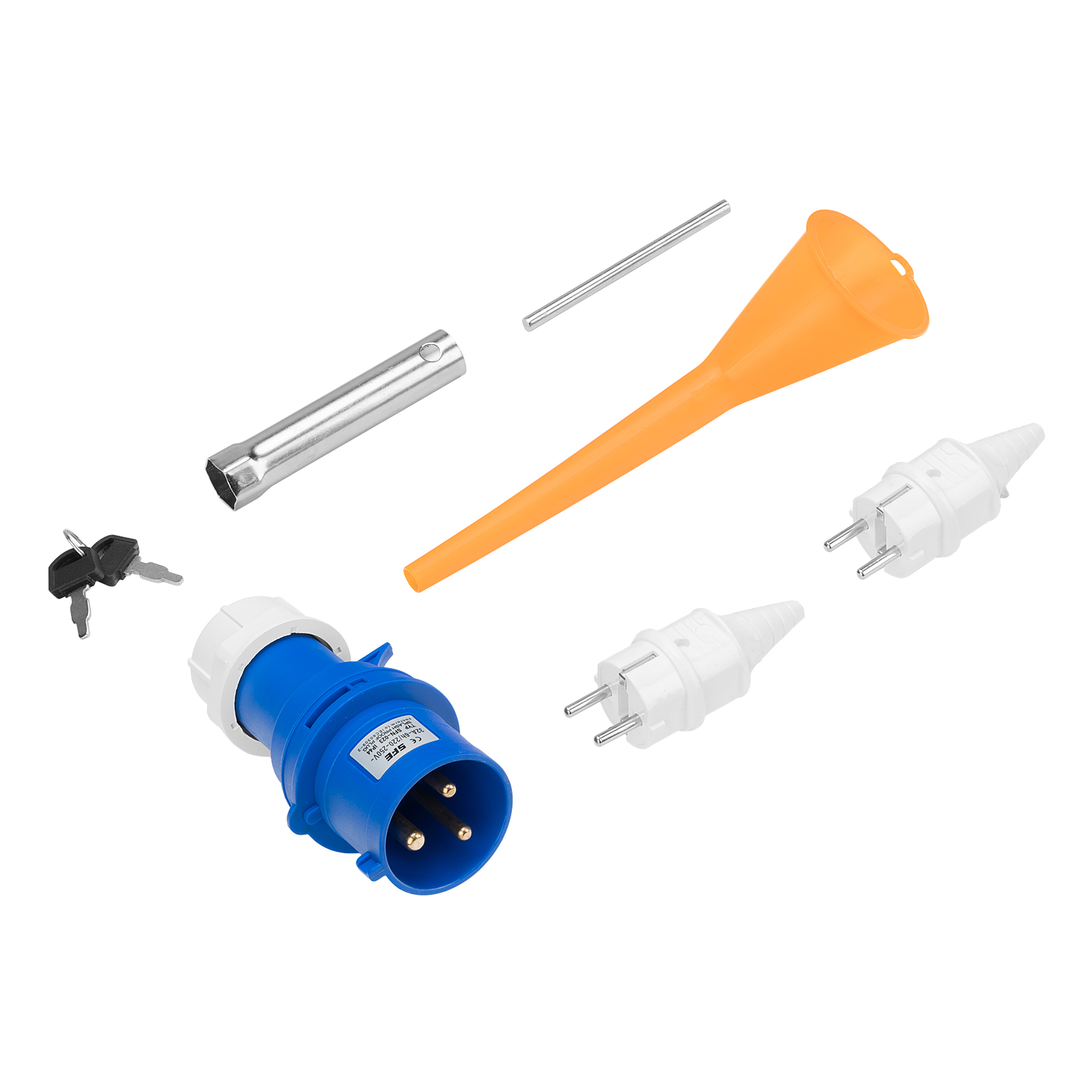Генератор - 1 штКлюч свечной - 1 штКлюч зажигания - 2 штВилка 230В/16А - 2 штВилка 230В/32А - 1 штРуководство по эксплуатации с гарантийным талоном - 1 штБатарея аккумуляторная - 1 шт |