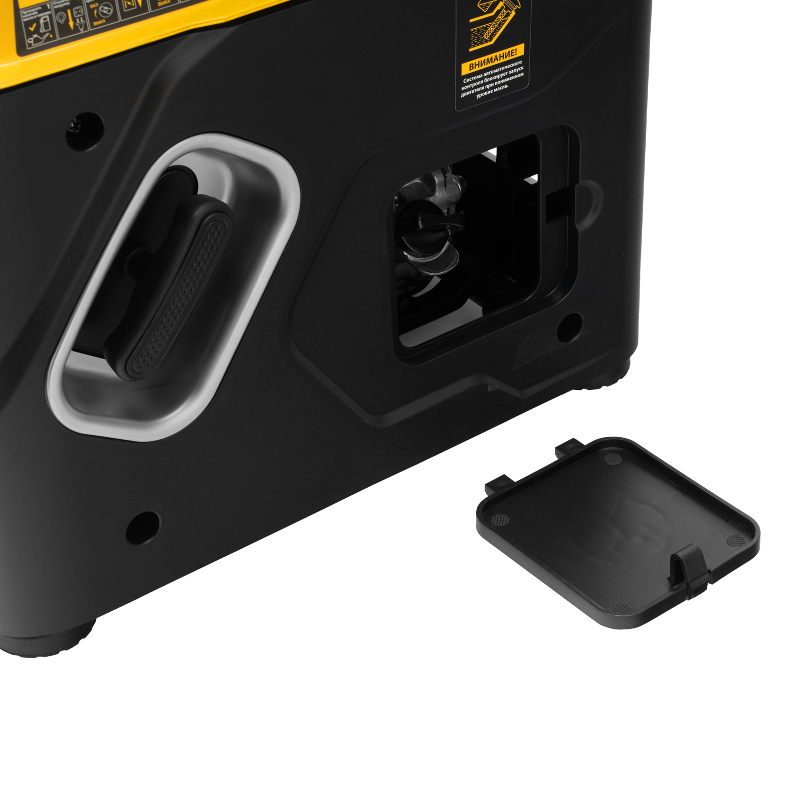 - Удобная транспортировка — в верхней части корпуса предусмотрена рукоятка для перемещения генератора.