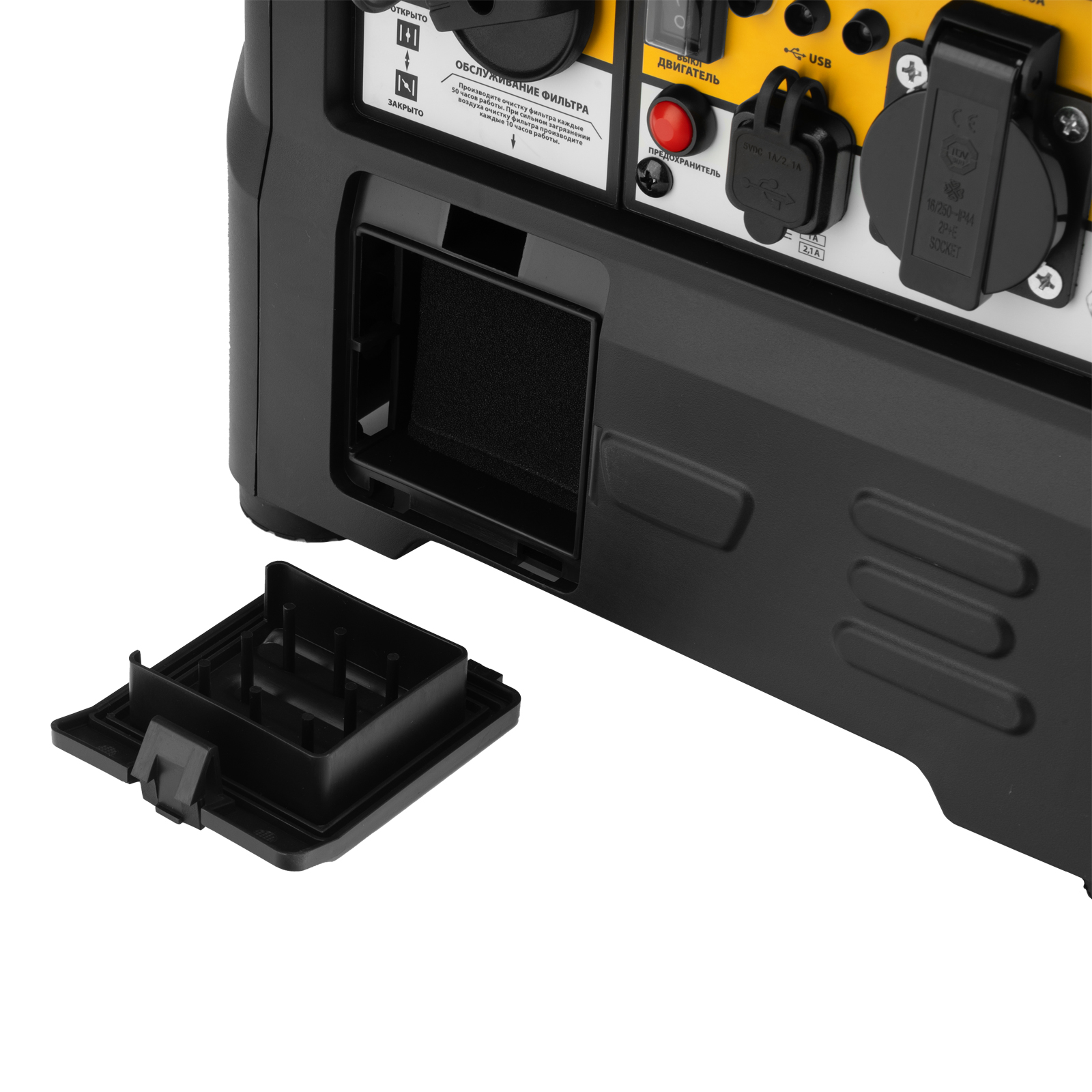 - Защита от перегрузки — при значительном превышении допустимой нагрузки подача тока прекращается для предотвращения поломки генератора.