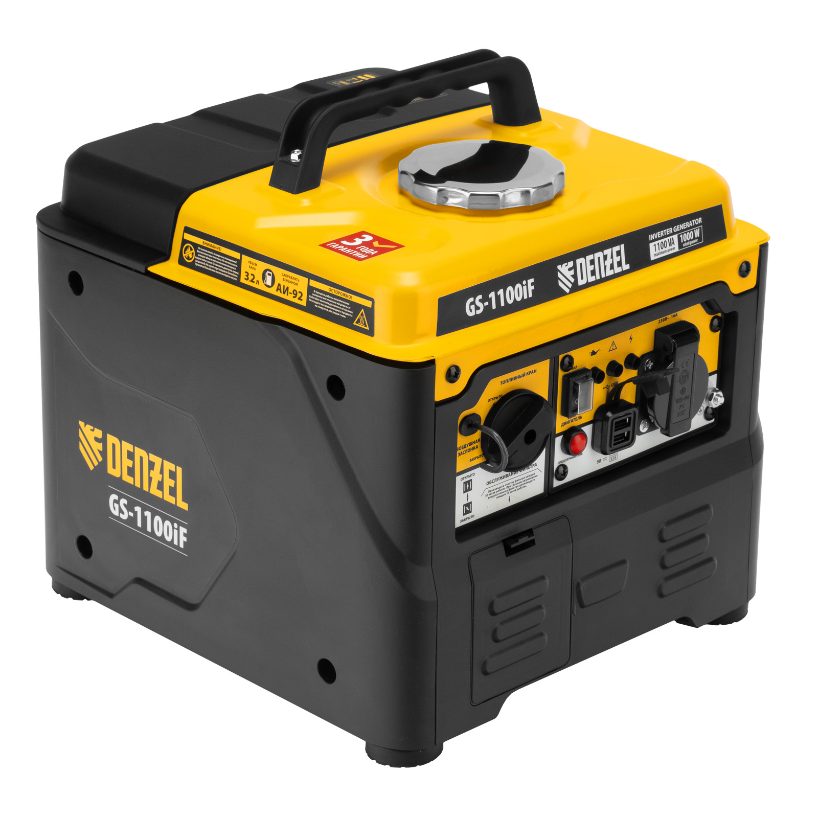 Генератор инверторный GS-1100iF, 1,1 кВт, 230 В, ручной старт DENZEL в Краснодаре