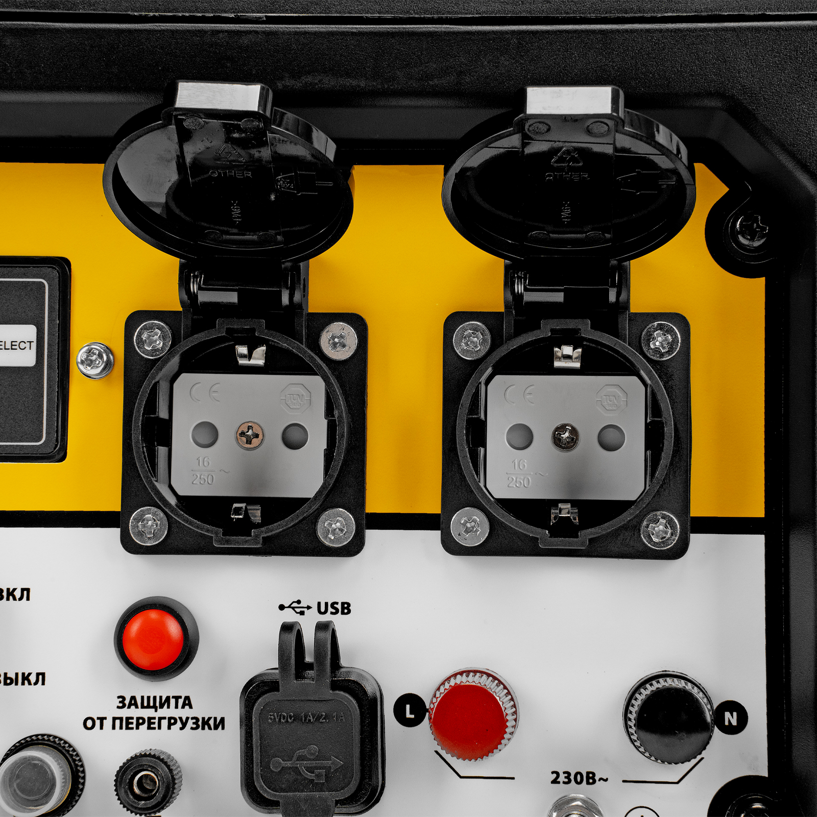 - Защита двигателя — генератор не запустится при низком уровне масла в картере, топливный и воздушный фильтры препятствуют попаданию посторонних частиц в бак и цилиндр.