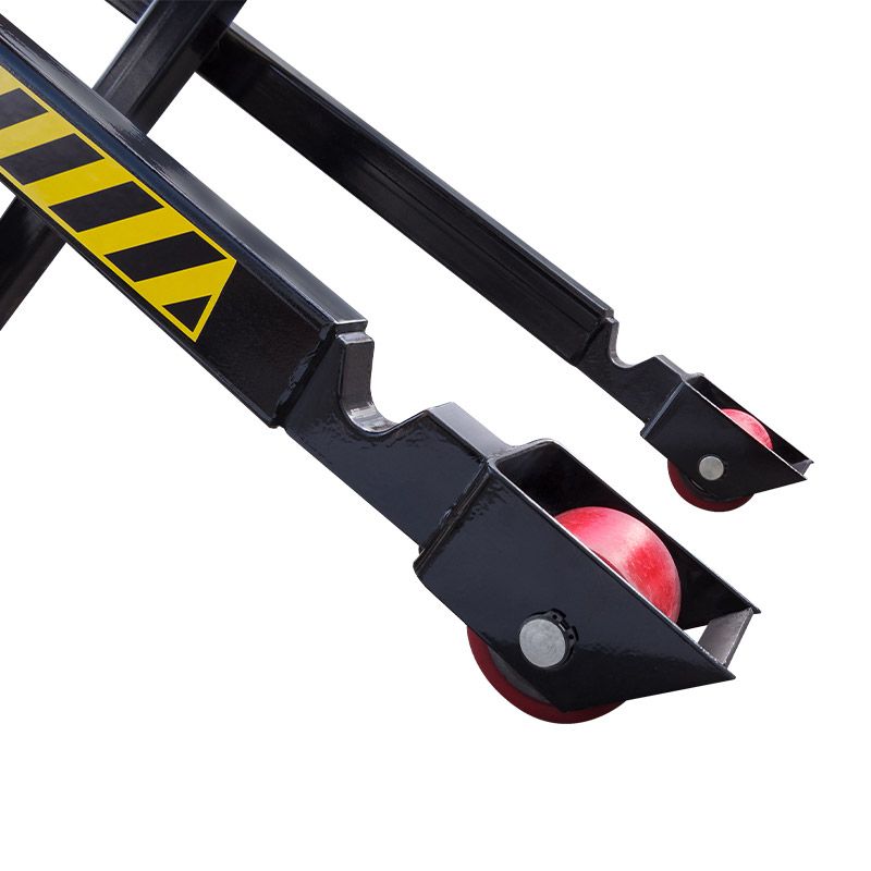 Благодаря телескопической конструкции гидроцилиндра, снижены габариты и масса тележки, что значительно повышает удобство ее эксплуатации. Ручка со специальным покрытием делает управление тележкой комфортным в любое время года. При подъеме вил на высоту 400 мм на землю опускаются дополнительные опоры, препятствующие перемещению тележки и повышающие ее устойчивость.