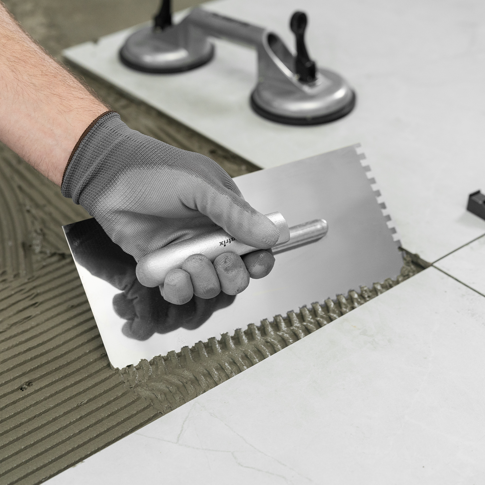 Гладилка Matrix 86737 размером 280 x 130 мм, с зубьями 6 х 6 мм, из нержавеющей стали, с деревянной ручкой, позволяет ровным слоем наносить на поверхности штукатурку и клеевые растворы. Зеркальная полировка снижает риск прилипания материала к полотну, благодаря чему покрытие получается идеально гладким.