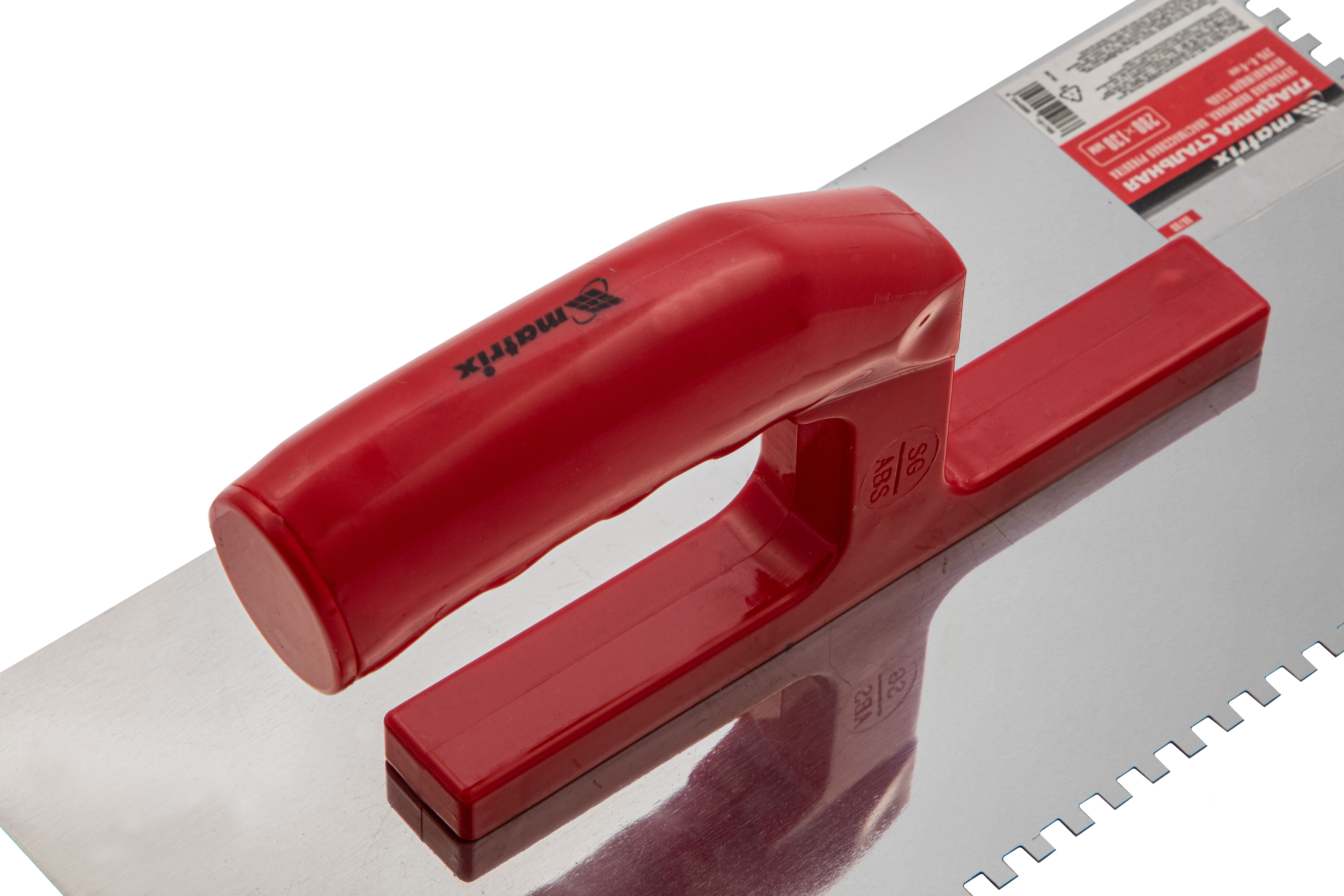 Гладилка из нержавеющей стали, 280 х 130 мм, зеркальная полировка, пластмассовая ручка, зуб 4 х 4 мм Matrix в Краснодаре