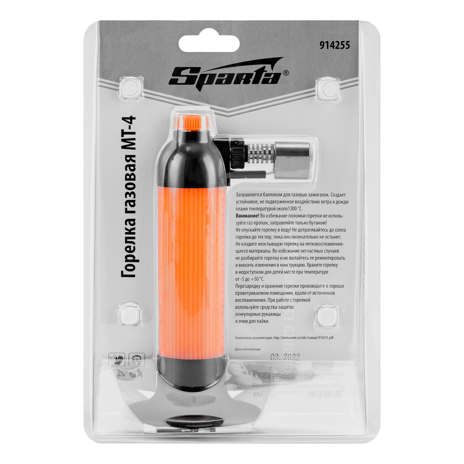 Газовая горелка Sparta MT-4 914255 служит для розжига огня, нагрева и пайки деталей, обработки термоусадочных трубок. Пригодится дома, на даче, в походе или в мастерской.