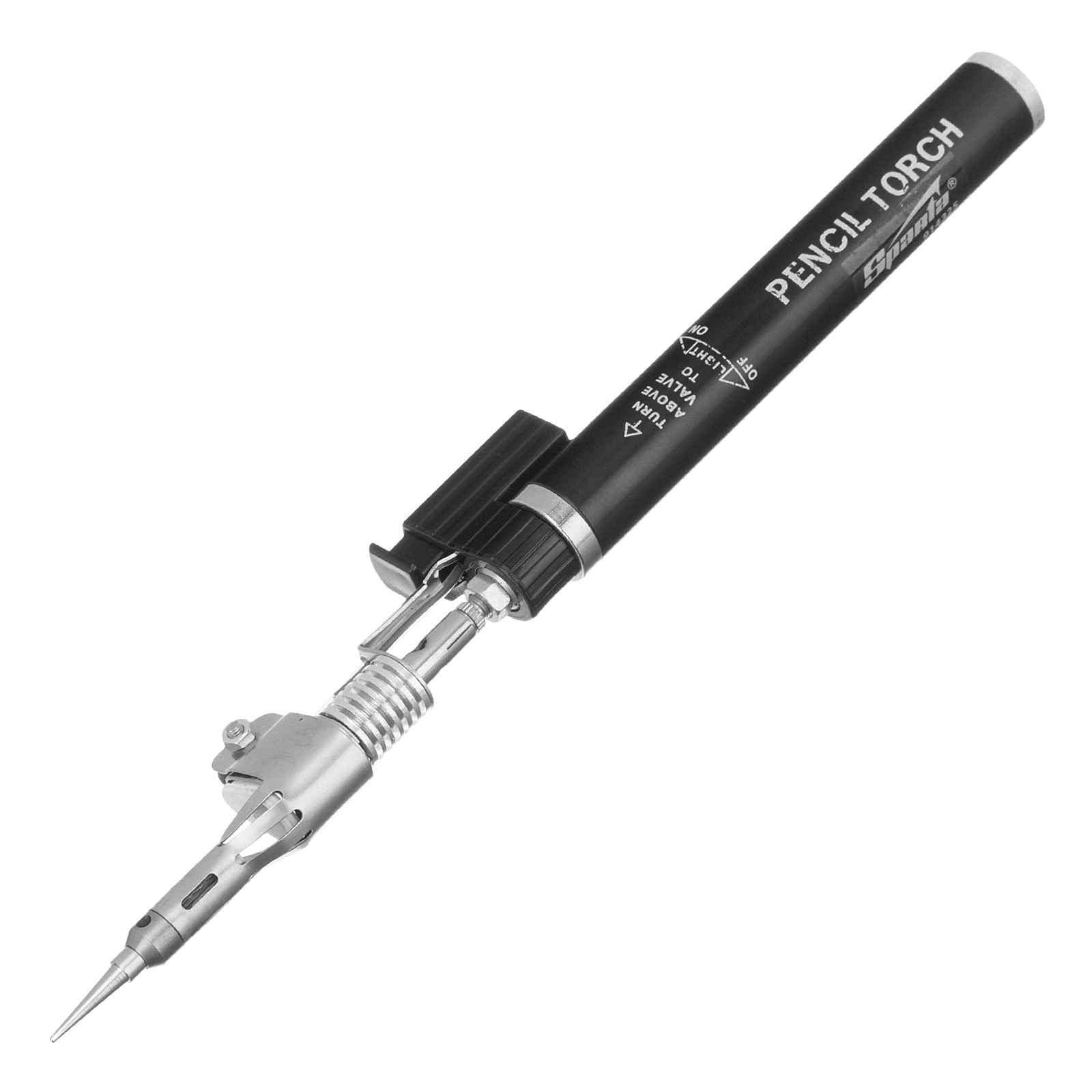 Газовая горелка Sparta 914325 типа «Карандаш», длиной 200 мм, с пьезоподжигом и 4 насадками, — портативный инструмент для пайки деталей и нагрева поверхностей. Включается моментально благодаря пьезоподжигу, позволяет получить устойчивое к ветру пламя. Пригодится домашнему мастеру, радиолюбителю или автовладельцу.